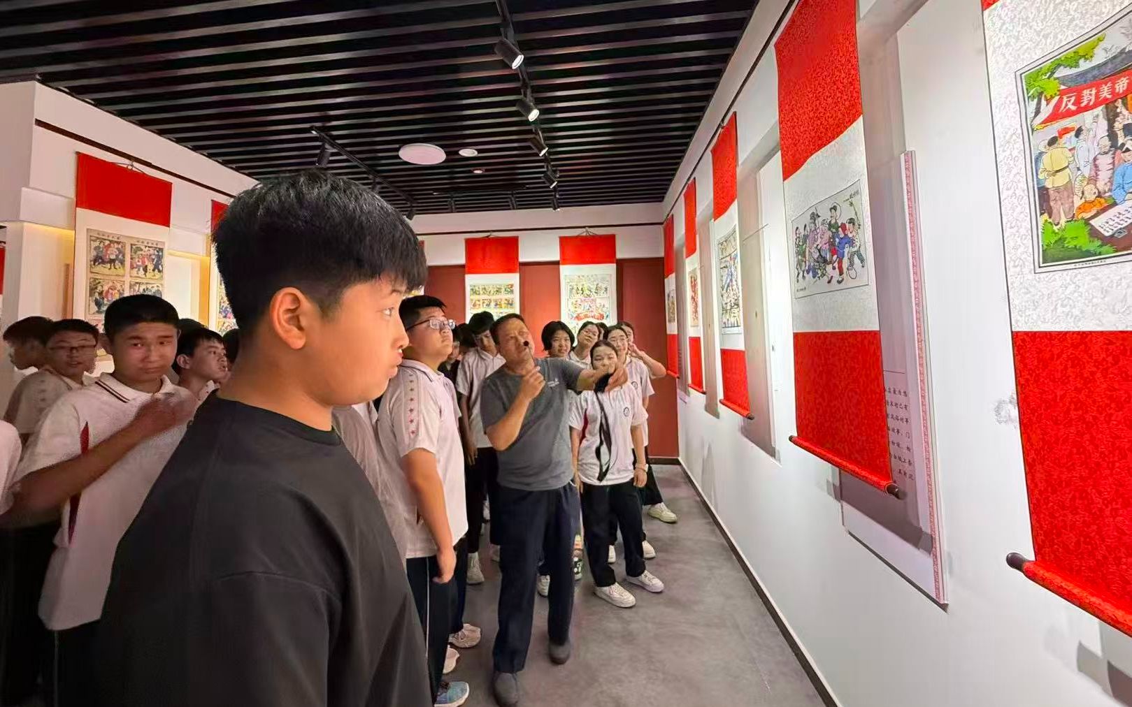對學生而言,這場展覽是特殊的“開學第一課”。孩子們透過斑駁的畫痕回望歷史,在《參軍圖》《支援前線》等作品中讀懂先輩犧牲,在《解放軍和兒童是好朋友》《保衛我們的好日子》里理解和平的珍貴,愛國情懷在藝術熏陶中悄然扎根。