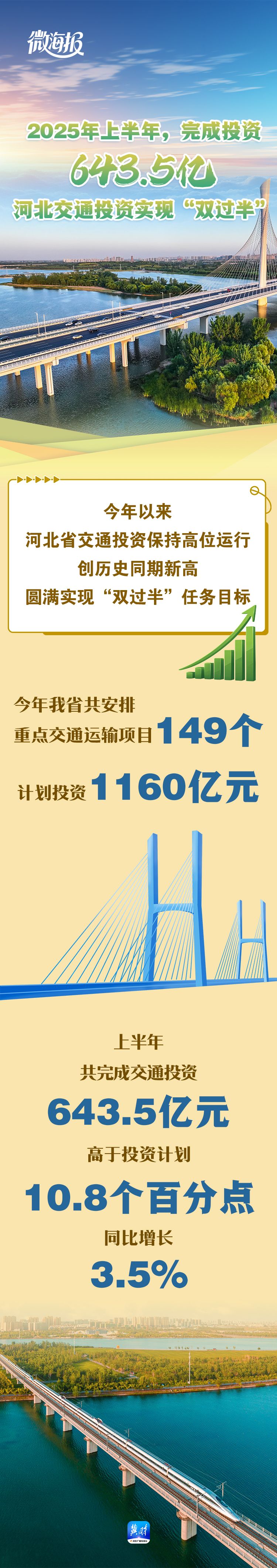 原標題:微海報丨2025年上半年完成投資643.5億 河北交通投資實現“雙過半”