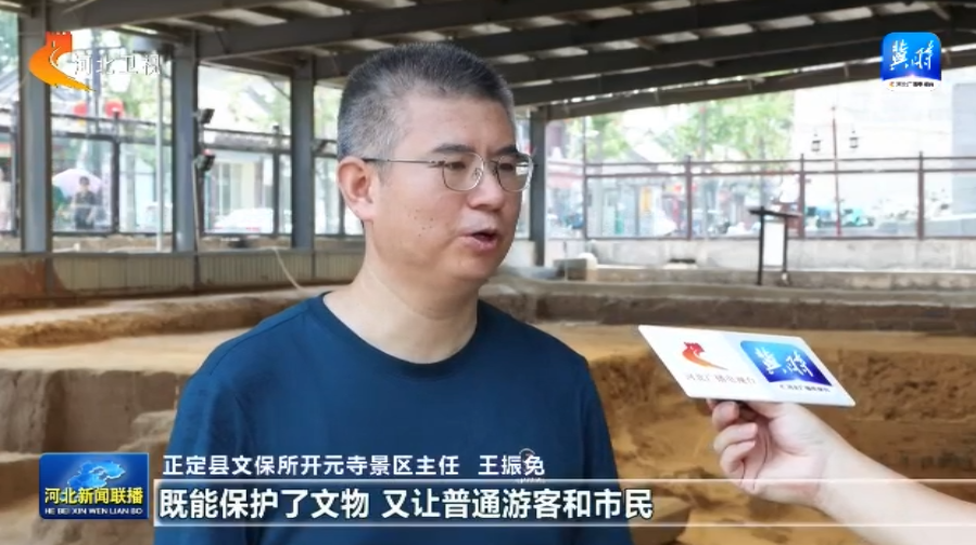 在正定縣開元寺南遺址考古現場,巨幅玻璃幕墻內,七個歷史時期的文化地層疊壓,透過玻璃,游客可以清晰感知千年古城的歷史文化遺跡。