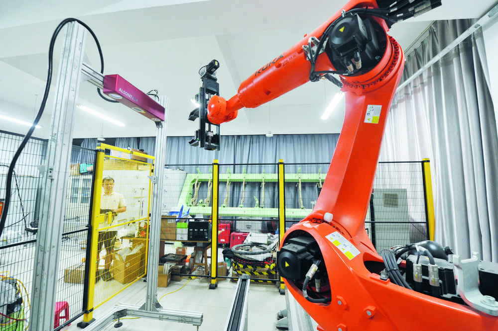 河北科技大學(xué)的機(jī)器人實(shí)驗(yàn)室里,“面向特鋼軋制質(zhì)量檢測(cè)的機(jī)器人系統(tǒng)”正在進(jìn)行測(cè)試。