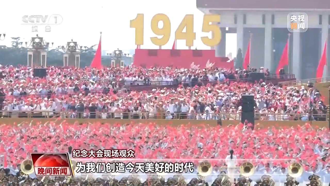 紀念大會現場觀眾:就像總書記說的“執大象、天下往”,我覺得我們今天真的有能力、有擔當,去維護世界的繁榮與和平。同時我們也要銘記歷史,珍惜過去革命先輩、抗日英雄們創造的美好時代。在新時代,我們更應該努力,踔厲奮發,創造更加美好的未來。