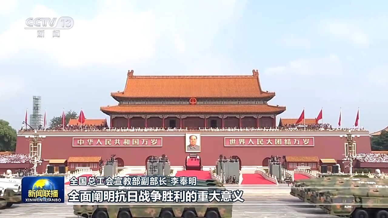 全國總工會宣教部副部長 李奉明:習近平總書記的重要講話,從全民族、全人類的高度,全面闡明抗日戰爭勝利的重大意義。莊嚴宣示中國人民維護世界和平與發展的堅定立場,我們深刻認識到中國共產黨的中流砥柱作用是抗日戰爭勝利的關鍵。