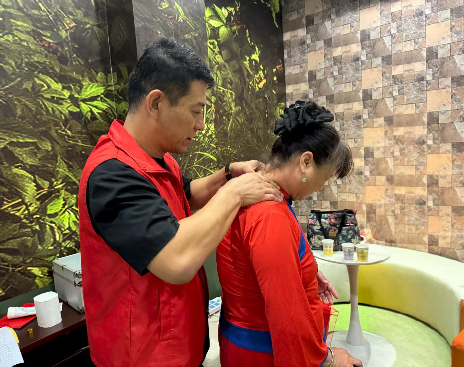 開放當天,按摩室內暖意融融。志愿者耐心詢問居民身體狀況,提供針對性服務。為肩頸疼痛的居民馬慶穩進行穴位按摩和熱敷理療,為長期腰痛、站立困難的付榮菊開展脈沖經絡疏通與精油活血,還傳授日常護腰、護頸小技巧。剛體驗完服務的馬慶穩稱贊道:“以前肩頸疼得抬胳膊都費勁,去醫院排隊不方便,現在在家門口就能免費享受專業按摩,太貼心了!”