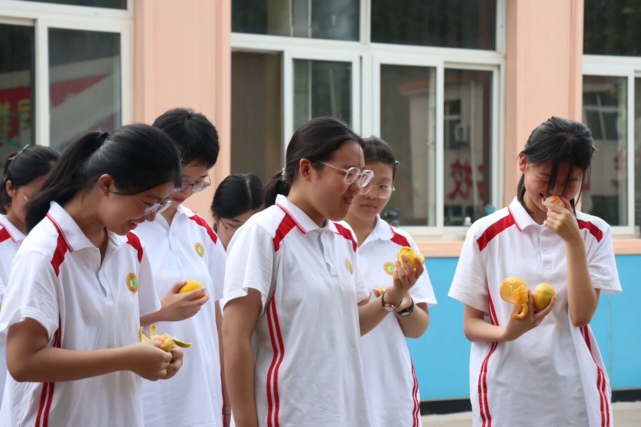 訓(xùn)練結(jié)束,新鮮的水果送到同學(xué)們手中。火龍果清香酥糯,橘子飽滿多汁。撥開橙黃的果皮,酸甜的果肉瞬間驅(qū)散疲憊。一陣陣?yán)嫦銚浔嵌鴣恚路鸢言餆岫既噙M(jìn)了果香里。這些水果不僅是味蕾的享受,更是學(xué)校對(duì)學(xué)子們的貼心牽掛,承載著 “愿同學(xué)們健康訓(xùn)練、快樂成長(zhǎng)” 的美好期許。