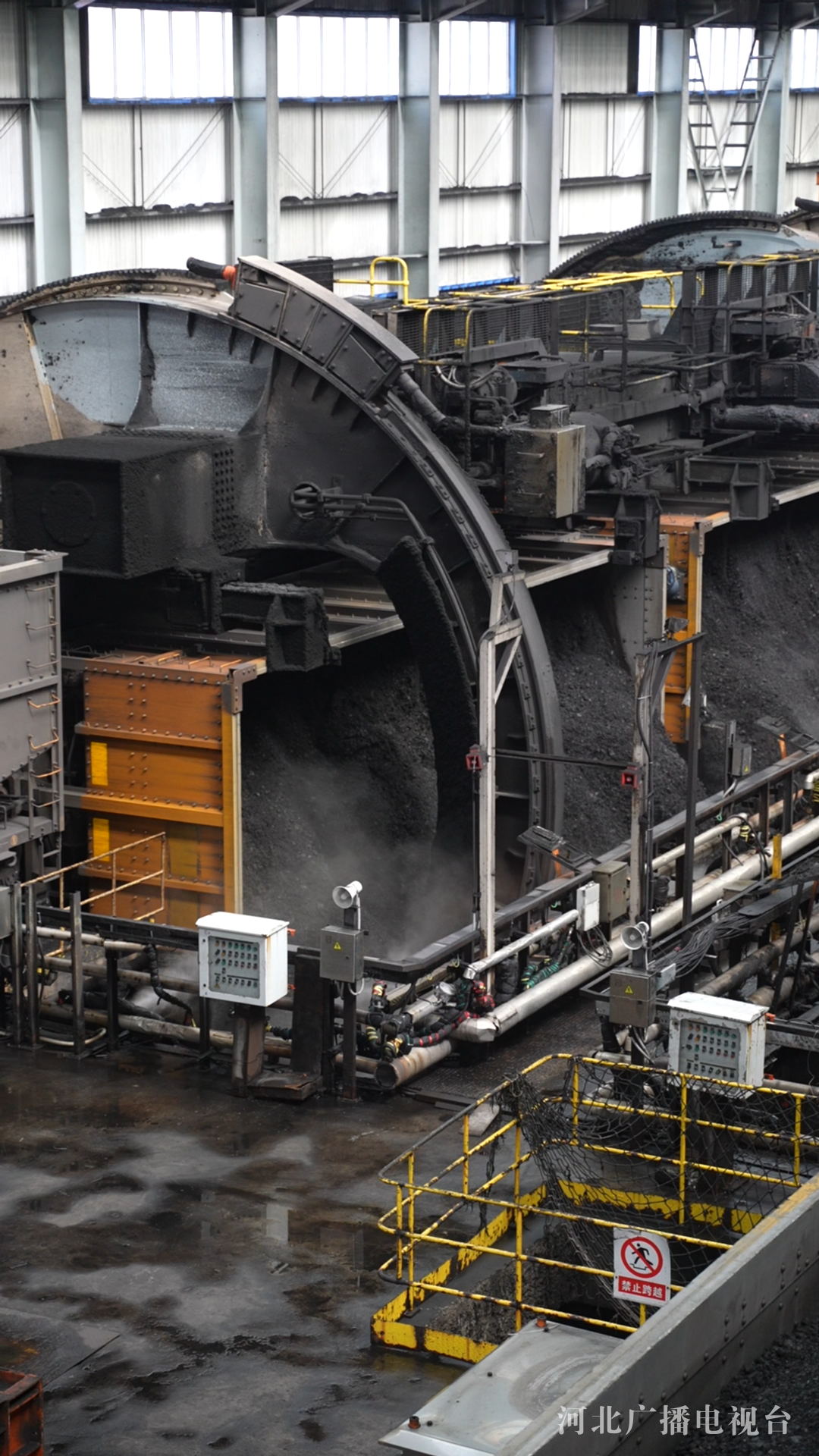 港口的“智慧”,不僅體現在碼頭裝卸作業,整個港口已實現翻堆取裝全流程智能化。在黃驊港三四期翻車機房,一列滿載煤炭的列車緩緩抵達,長長的車廂被定位車牽引至抵港第一站。記者看到每4節車廂為一循環,翻車機鉗制車廂旋轉160度左右,只聽“轟”的一聲,320噸煤炭在干霧的全包圍中順勢卸下,整個過程20秒左右。
