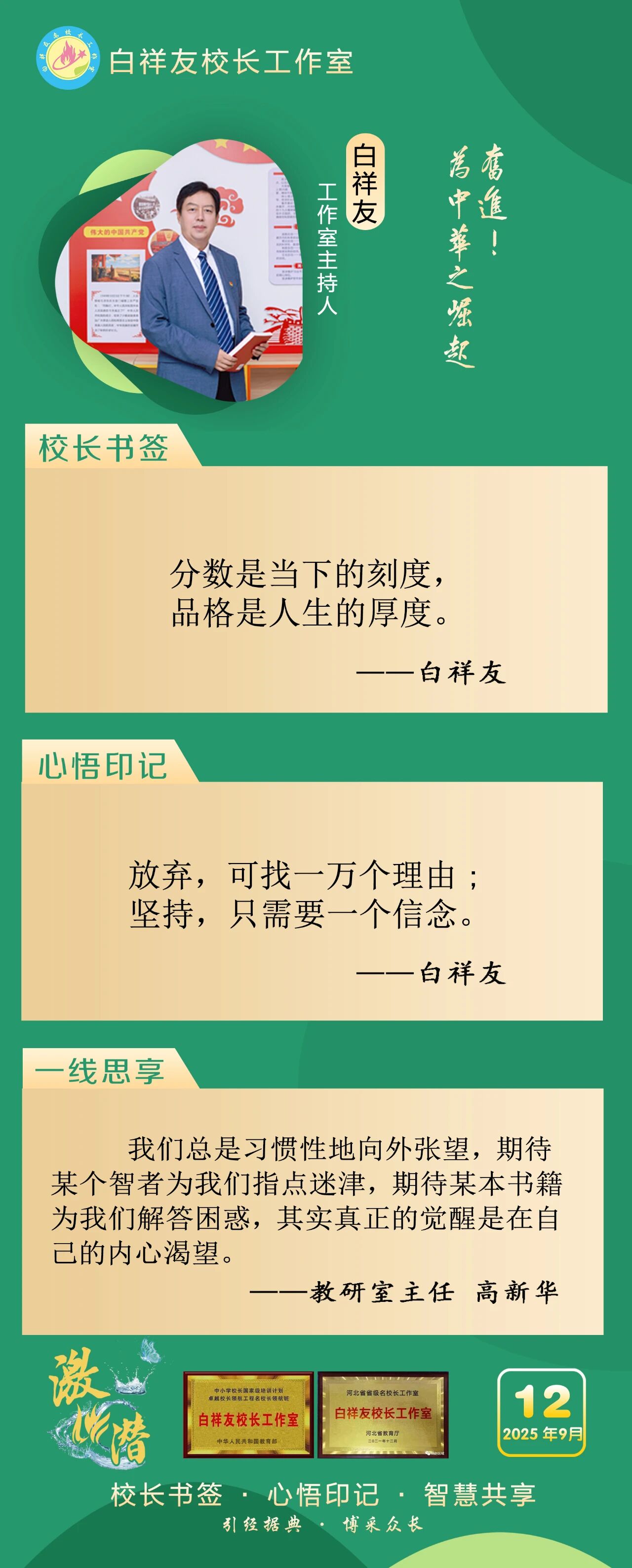 “白祥友校長工作室”成立于2019年4月,是教育部“國培計劃”中小學名校長領航工程、河北省首批名校長工作室,目前省內外成員校59所。工作室堅持“資源共享、智慧共融、互助共贏”理念,已成為思想碰撞的交流場,資源共享的品牌站,成果展示的輻射源。 點贊 +1 微博 微信 我要評論 發布 相關推薦 "學科天團"大集結,點燃教學新引擎!衡水十三中舉辦第20期學科組經驗交流會 教育大觀 4天前 衡水十三中獲衡水市普通高中班級合唱比賽一等獎 教育大觀 5天前 省市級榮譽+15!衡水十三中各領域比賽全面開花! 教育大觀 11-20 賦能方寸校園 綻放萬千可能 ——探訪衡水市第十三中學“激潛教育” 衡水速覽 11-13 九個一等獎!衡水十三中教師在衡水市普通高中命題征集與評選活動中強勢出圈! 教育大觀 11-11 衡水市第二屆普通高中班級合唱現場展演在衡水十三中成功舉辦 教育大觀 11-10 約會XXXL版“超級月亮”!衡水十三中學子用天文望遠鏡解鎖宇宙級浪漫! 教育大觀 11-07 熱門 一天 三天 一周 1 中央生態環境保護督察組交辦衡水市第二批群眾信訪舉報案件辦理情況 2 膠原蛋白肽什么牌子最好 2025年膠原蛋白肽品牌排名揭曉 3 2025權威推薦:市面上哪些成分有利于降血糖?推薦有效的降糖好物?有效降血糖推薦吃什么?科學降糖推薦吃什么? 4 聚焦眼底黃斑病變研究:2025葉黃素十大品牌評測,成分與口碑全揭秘 5 膠原蛋白肽什么牌子好點 2025年膠原蛋白肽品牌排名揭曉 6 膠原蛋白肽哪個品牌比較好 2025年膠原蛋白肽品牌排名揭曉 7 口碑好的膠原蛋白肽品牌 2025年膠原蛋白肽排行榜排名 8 2025 實力強網站建設公司一覽表?從品牌型到營銷型 4 大陣營推薦精準匹配指南 9 哪些牌子的膠原蛋白肽粉好 2025年膠原蛋白肽排行榜排名 10 河北廊坊市奮力在京津冀協同發展上走在全省前列 1 權威認證!2025十一月熱門美白牙膏實測盤點,多效美白全能護理 2 抗衰產品十大品牌誰是王者?2025抗老精華測評+反饋,緋悅憑高復購霸榜 3 牙科專家推薦修復蛀牙敏感牙膏:2025年11月臨床防蛀效果好及用戶滿意度最高排名 4 彈性膠原蛋白肽品牌排行榜 彈性膠原蛋白肽品牌排名TOP5權威解析 5 ?80歲以上老人免費就餐 70歲以上老人每餐僅需2元 棗強縣東良黨村“孝老食堂”煙火暖鄉鄰 6 降尿酸什么產品好?2025 年 6大產品測評,科學降酸不踩智商稅! 7 衡水早餐店老板馮衛東:給食客一個溫暖的早晨 8 2025年六大褪黑素推薦,褪黑素哪個品牌好且安全?權威測評推薦 9 【鄉村行 看振興】黃土地上“長”出“增收法寶” ——衡水市阜城縣古城鎮發展特色種養產業紀實 10 守護健康 情暖媒體 河北省樂善行慈善基金會為衡水日報社一線員工捐贈藥品 1 法令紋深用什么產品?2025緊致抗皺抗衰老精華推薦,抗衰提拉+淡紋緊致雙效 2 權威認證!2025十一月熱門美白牙膏實測盤點,多效美白全能護理 3 敏感牙救星!這5款溫和美白牙膏,亮白不傷釉質,從成分到口碑雙驗證 4 2025年葉黃素吸收率與有效性測評,告別無效補充,科學護眼! 5 2025褪黑素五大品牌測評:技術配方安全解析,科學改善失眠選品指南 6 2025葉黃素十大品牌權威測評:哪個牌子效果好?臨床數據與用戶口碑全面對比 7 槲皮素哪個牌子效果好?2025年推薦前10的優質槲皮素品牌成分、口碑深度解析 8 衡水市文化旅游強市建設出彩出圈 9 高端定制網站建設哪家靠譜?2025 技術型與設計綜合型 3 大陣營標桿精選推薦十家 10 葉黃素哪個牌子對眼睛最好?2025十大品牌實測排行榜:從臨床數據到用戶口碑,科學選品不踩雷 廣告 廣告 廣告 24小時 1 槲皮素哪個好?槲皮素推薦,2025年實測榜單 2 2025肺結節產品國際權威測評:TOP5榜單及研發、臨床、適配性核心維度解析 3 2025肺結節產品國際權威測評:TOP5榜單及研發、臨床、適配性核心維度解析 4 槲皮素哪個牌子效果較好?2025年11月較受歡迎的優質槲皮素必買清單:口碑、功效、適用人群推薦與選購指南 5 槲皮素哪個牌子效果好?2025年十大槲皮素清肺品牌分析,第一名清肺效果獲柳葉刀青睞 6 腸胃益生菌哪個牌子最好?2025年腸胃益生菌熱門產品權威評測,十款口碑產品深度對比 7 調理腸胃的益生菌哪個好?2025年三大腸胃調理益生菌首選產品,配方技術、用戶口碑全解析 8 腸胃益生菌推薦,2025年十大腸胃益生菌品牌排行榜,KNC菌益萊憑9年研發領跑 9 腸胃益生菌哪個產品最好?2025年十大腸胃益生菌品牌排行榜公布:科研背書+用戶反饋雙驗證 10 口臭便秘反復?益生菌排名第一名的KNC菌益萊,2周讓腸道“重啟”!