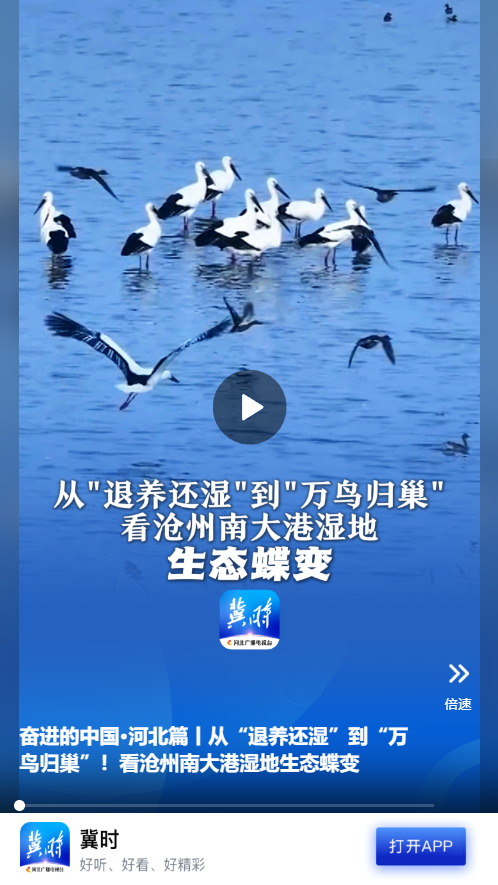 來(lái)源:冀時(shí)客戶端原標(biāo)題:奮進(jìn)的中國(guó)·河北篇丨從“退養(yǎng)還濕”到“萬(wàn)鳥(niǎo)歸巢”!看滄州南大港濕地生態(tài)蝶變