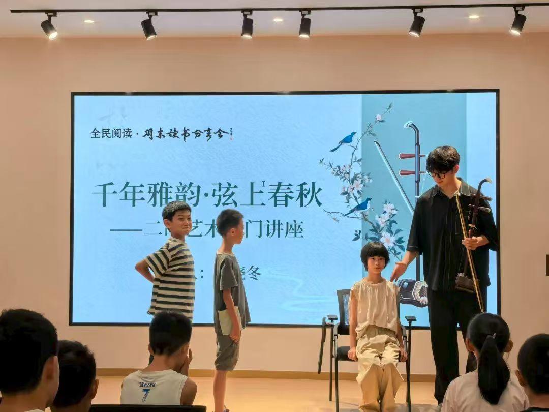 當(dāng)琴弓輕觸琴弦,流淌出的是千年歲月的低語,是華夏大地的深情。在《千年雅韻·弦上春秋——二胡藝術(shù)入門講座》中,河北省群文系統(tǒng)業(yè)務(wù)大比武一等獎(jiǎng)獲得者、衡水市群眾藝術(shù)館音樂教師范曉冬現(xiàn)場示范持弓的正確姿勢、按弦的基本方法,并邀請觀眾上臺體驗(yàn)二胡的正確演奏姿勢,完成簡單旋律《小星星》的演奏。
