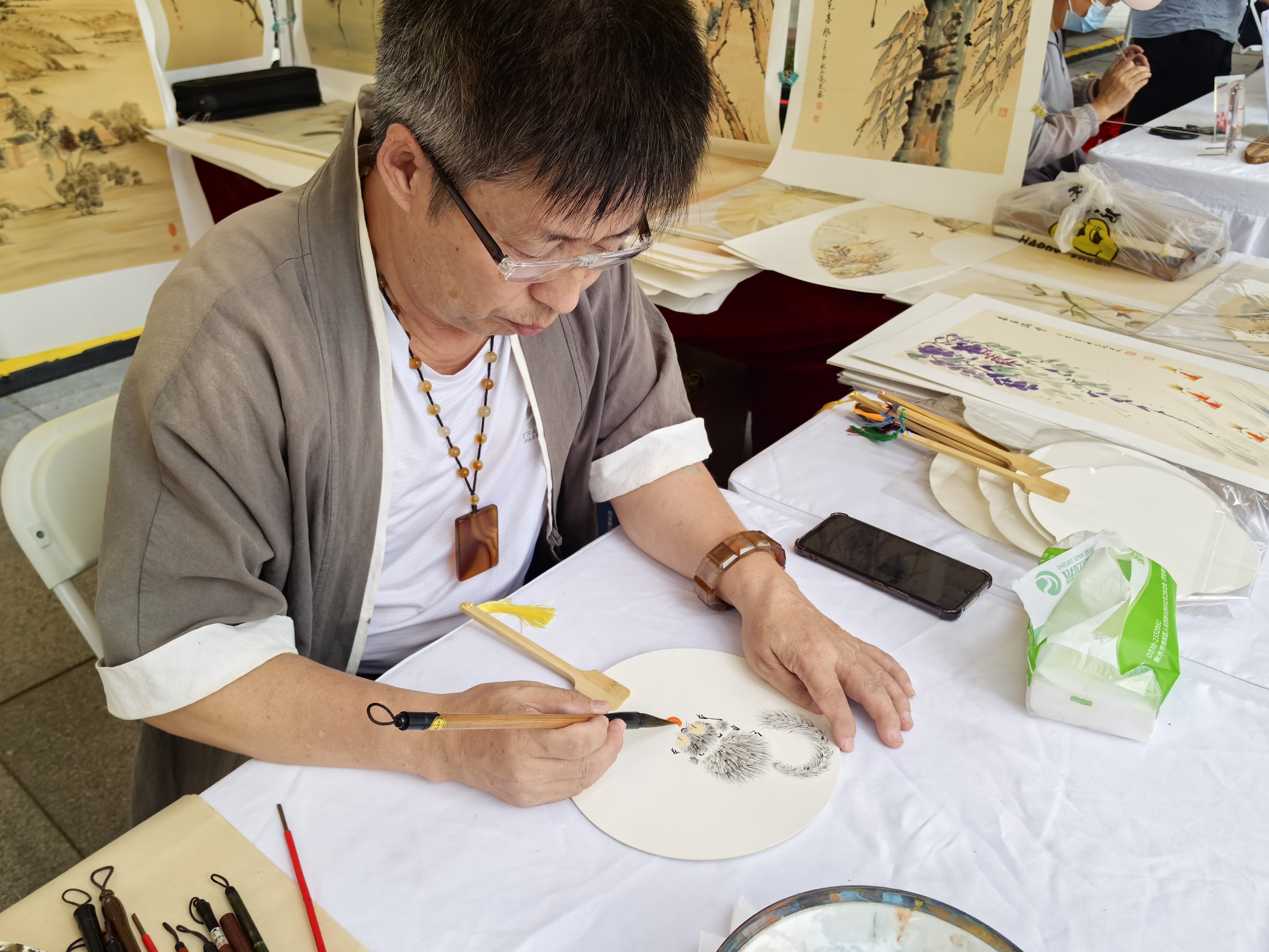 武強(qiáng)年畫色彩濃烈,線條剛勁有力,描繪著神話傳說、民俗風(fēng)情,工作人員熱情地為市民介紹著武強(qiáng)年畫的歷史與文化創(chuàng)新產(chǎn)品,不少市民被深深吸引,挑選著心儀的年畫帶回家。中國畫攤位四周,懸掛著多幅精美的中國畫作品,有描繪松鼠在松枝間靈動跳躍的,有展現(xiàn)仙鶴立于花草間姿態(tài)優(yōu)雅的。這些作品筆墨精湛,或工筆細(xì)膩,或?qū)懸鉃⒚摚M顯中國畫的獨(dú)特韻味與深厚底蘊(yùn)。