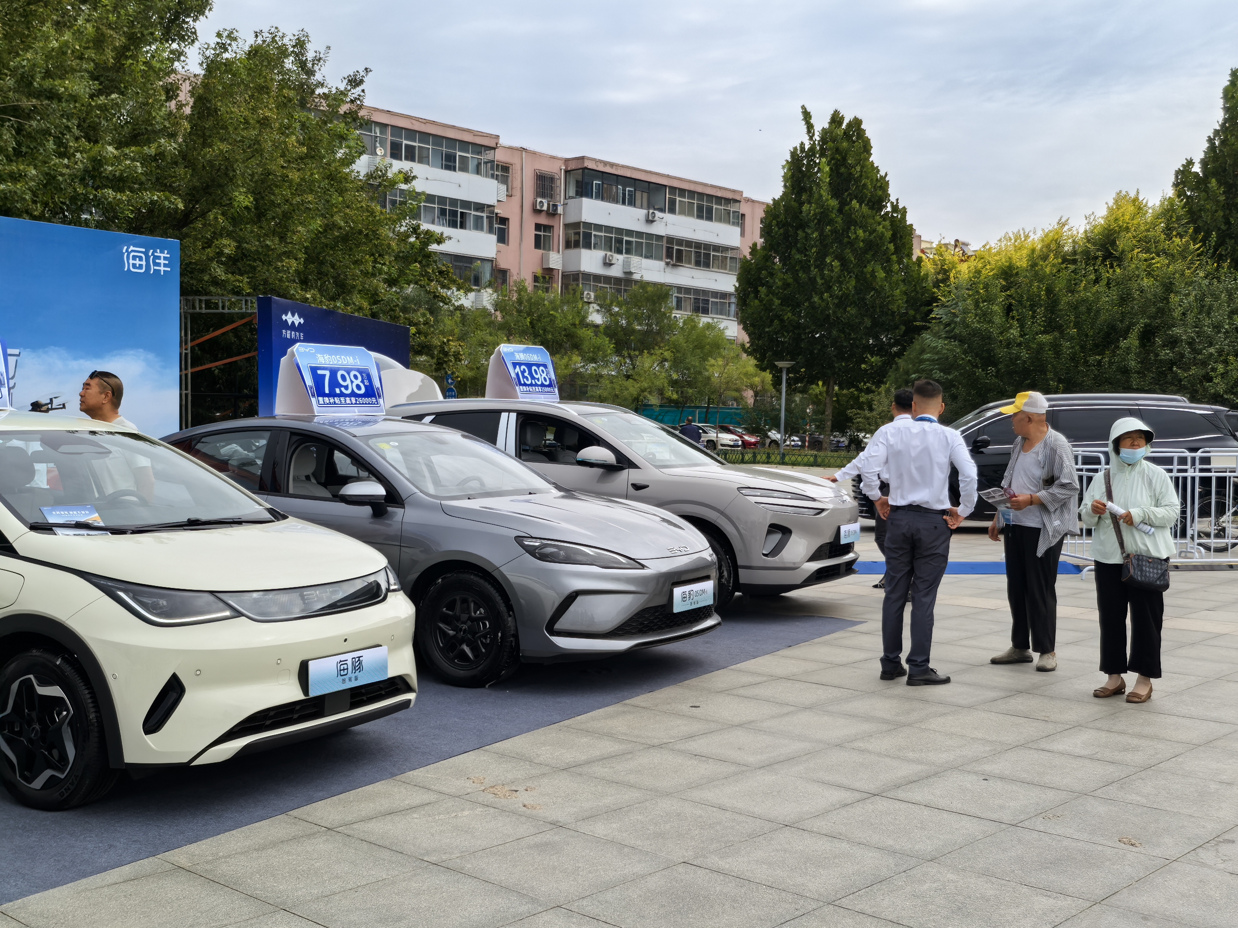 踏入集市,最吸引眼球的便是汽車新能源集市。這里匯聚了比亞迪、長城等十家知名品牌,展示著最新款的新能源汽車。