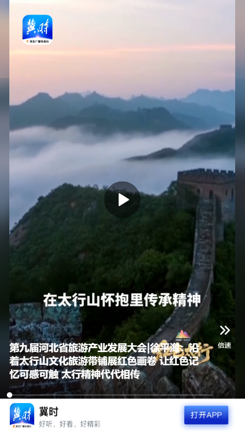來源:冀時客戶端原標題:第九屆河北省旅游產(chǎn)業(yè)發(fā)展大會|徐平海:沿著太行山文化旅游帶鋪展紅色畫卷 讓紅色記憶可感可觸 太行精神代代相傳