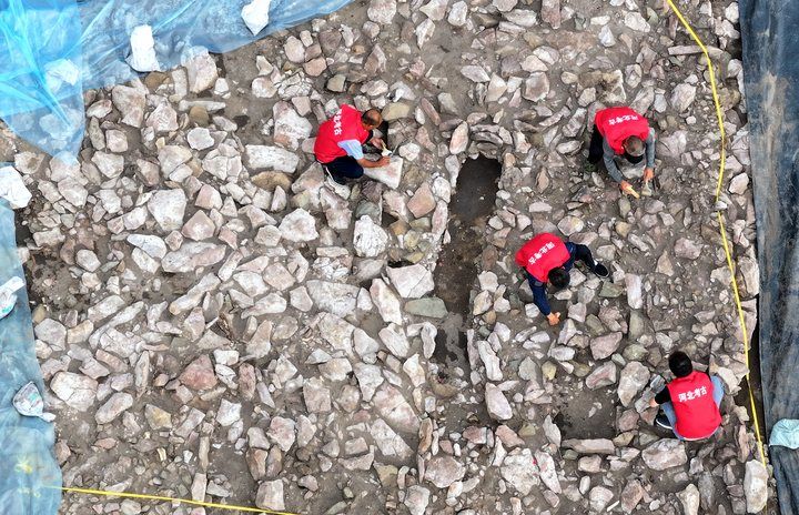 工作人員在東山頭遺址考古發(fā)掘現(xiàn)場工作(資料照片)。新華社發(fā)(河北省文物考古研究院供圖)
