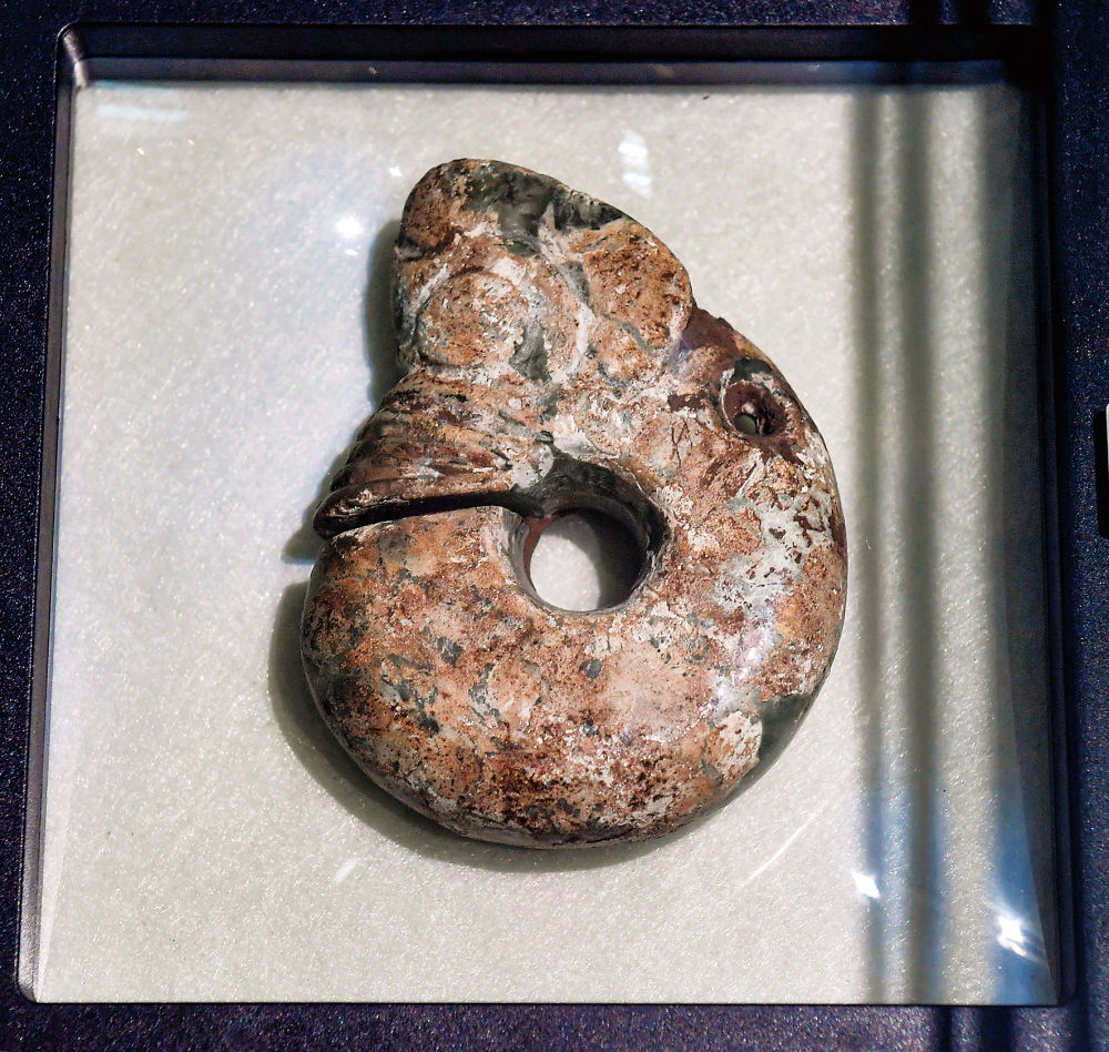 這是6月18日拍攝的宣化鄭家溝遺址出土的玉龍。新華社記者 王曉 攝