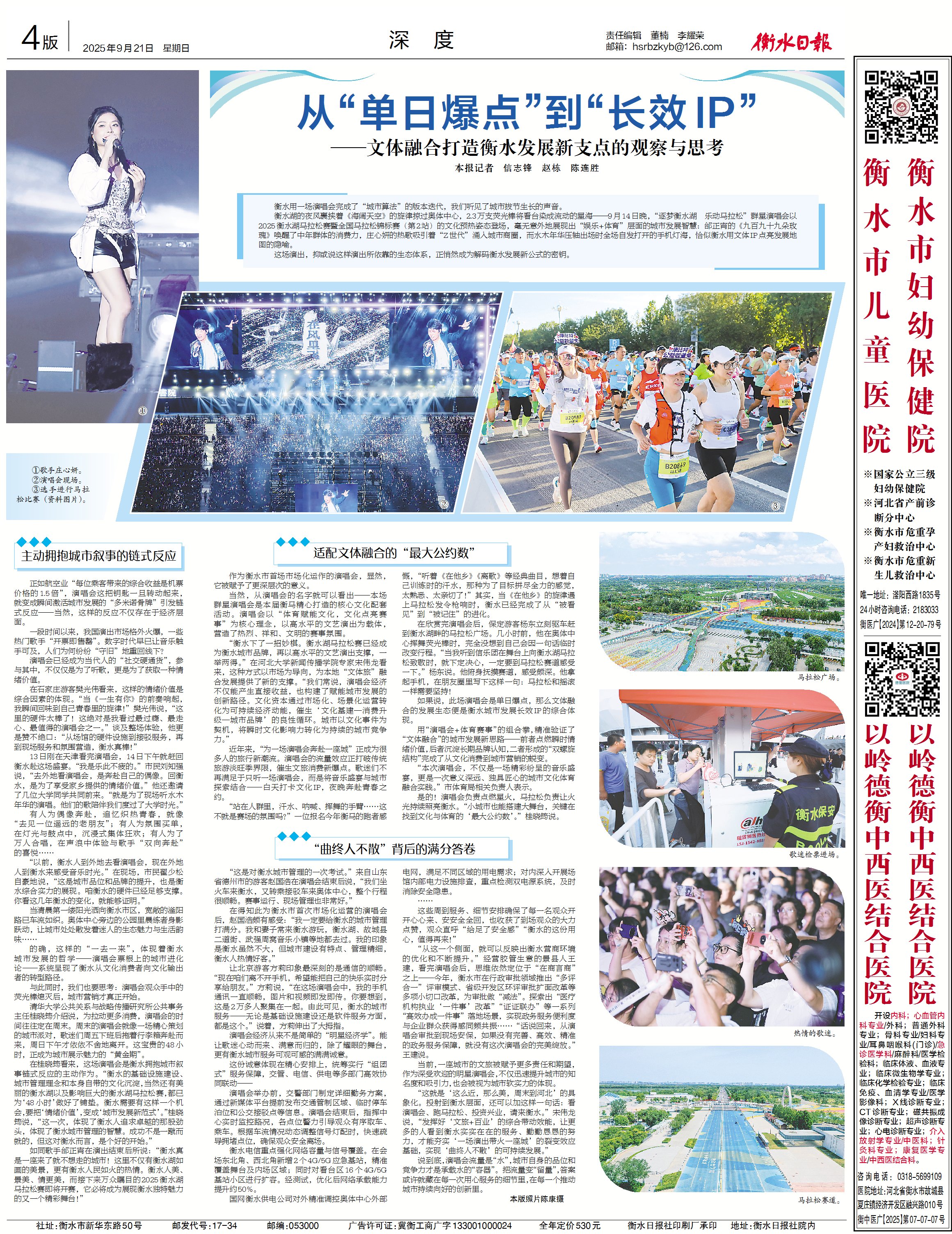是的!演唱會負責點燃星火,馬拉松負責讓火光持續(xù)照亮衡水。“小城市也能搭建大舞臺,關(guān)鍵在找到文化與體育的‘最大公約數(shù)’。”桂曉筠說。