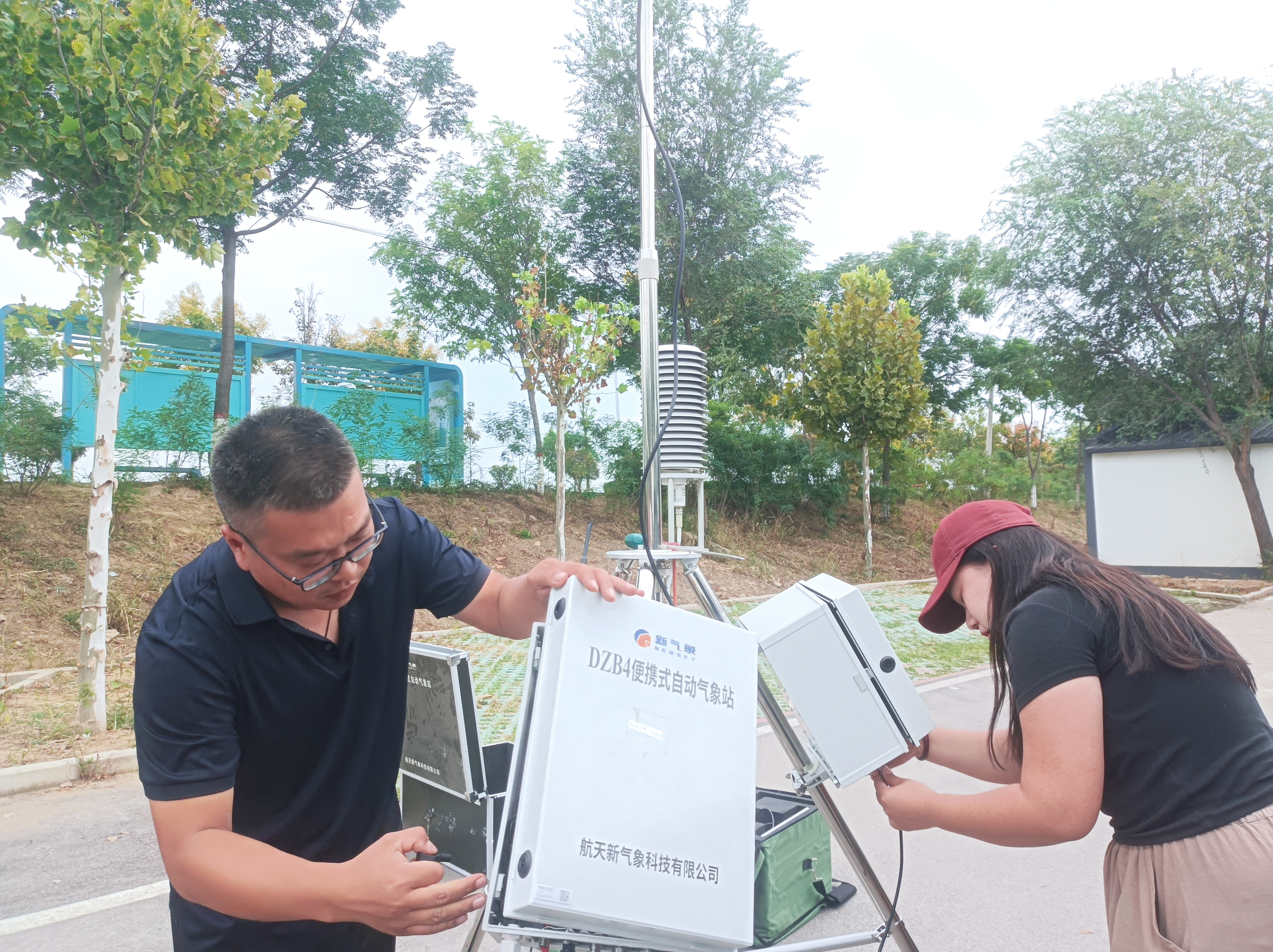 衡水氣象服務人員沿“衡馬”賽道布設便攜式自動氣象站,為賽事組提供實時氣象監測數據。 楊樹燕攝