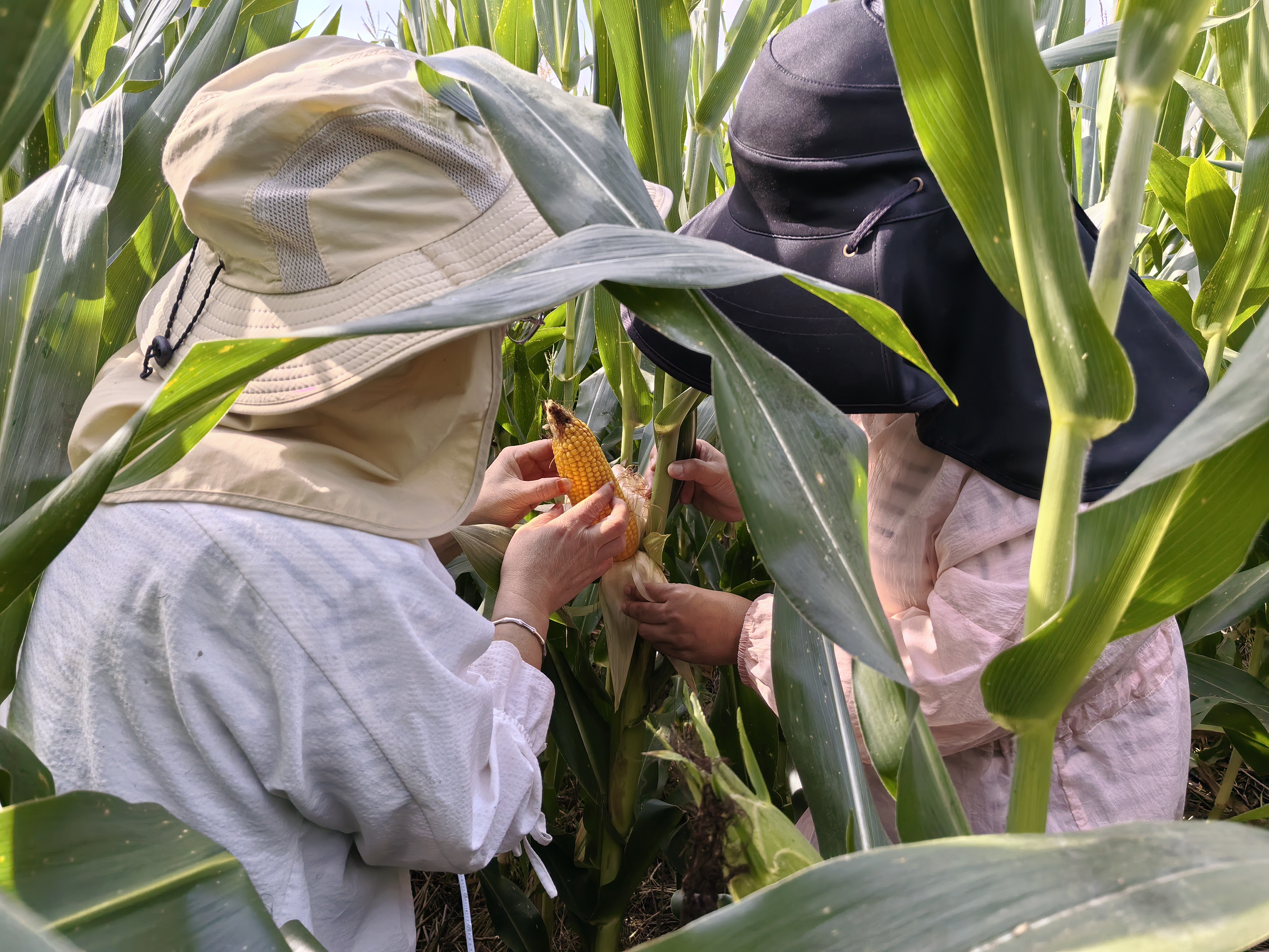 在示范田間,兩部門服務(wù)人員分工協(xié)作,直奔生產(chǎn)一線。他們細致查看不同地塊玉米的整體長勢、土壤墑情、病蟲害發(fā)生情況,確保掌握作物生長的真實狀態(tài)。同時,圍繞產(chǎn)量測算關(guān)鍵指標,工作人員現(xiàn)場測量玉米行距、株距,清點穗粒數(shù)、空桿數(shù)與雙穗數(shù),通過科學數(shù)據(jù)采集,精準研判當前玉米生長態(tài)勢,為后續(xù)產(chǎn)量預(yù)測提供了扎實、可靠的第一手依據(jù)。