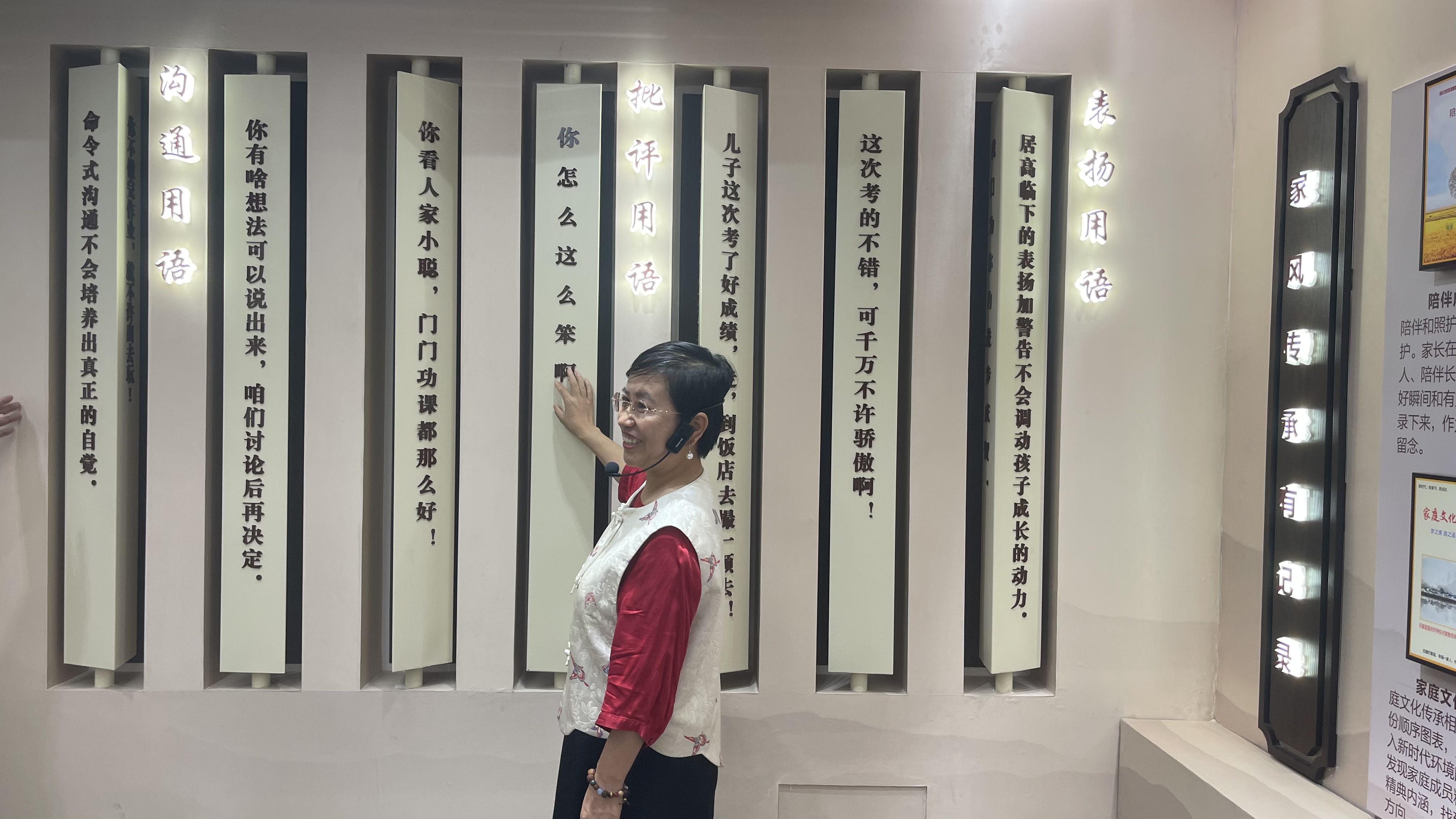 家風館共設有社區家風等九大展區,除展示家文化的歷史淵源和脈絡外,還集中展示社區居民的好家風好家訓故事,如“積善之家”“助人為樂”“讀書潤德”“知恩圖報”“吃苦耐勞”等主題事跡,讓身邊事教育身邊人。居民們在參觀過程中,對家風家訓的理解更加深厚,在社區掀起人人爭當“孝親模范”的新風尚。