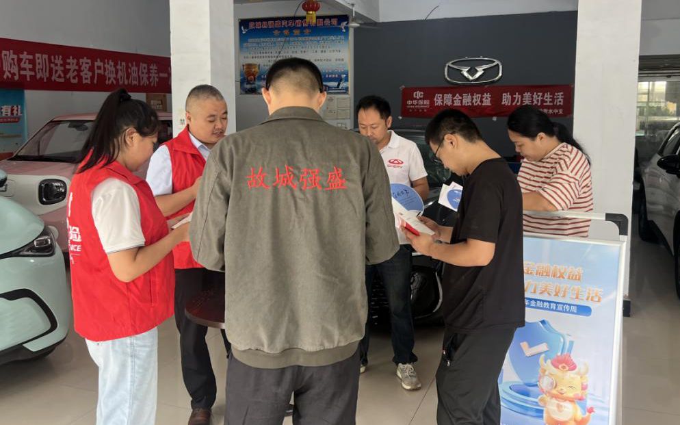 近日,中華財(cái)險(xiǎn)故城支公司工作人員前往強(qiáng)盛汽車銷售有限公司對(duì)企業(yè)員工開展了一場(chǎng)“保障金融權(quán)益 助力美好生活”的宣傳活動(dòng)。
