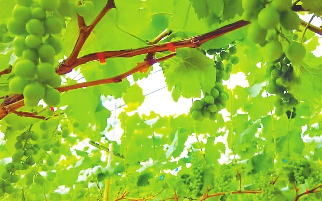 走進饒陽縣五公鎮(zhèn)設施葡萄大棚,仿佛步入一座珍寶館:紫色、綠色、紅色、黃色……一串串葡萄如翡翠似瑪瑙,令人垂涎。自4月上旬開始采摘,這場味覺盛宴已持續(xù)五個多月?!岸嗵澘諝饽茉鰷叵到y(tǒng),葡萄上市比傳統(tǒng)種植提前了20天左右?!狈N植戶劉沖輕點手機屏幕,系統(tǒng)應聲啟動。