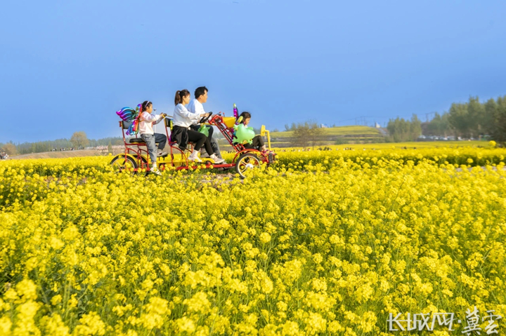 游客在金沙河紅薯嶺的油菜花海騎行游玩。通訊員 高儒森 供圖