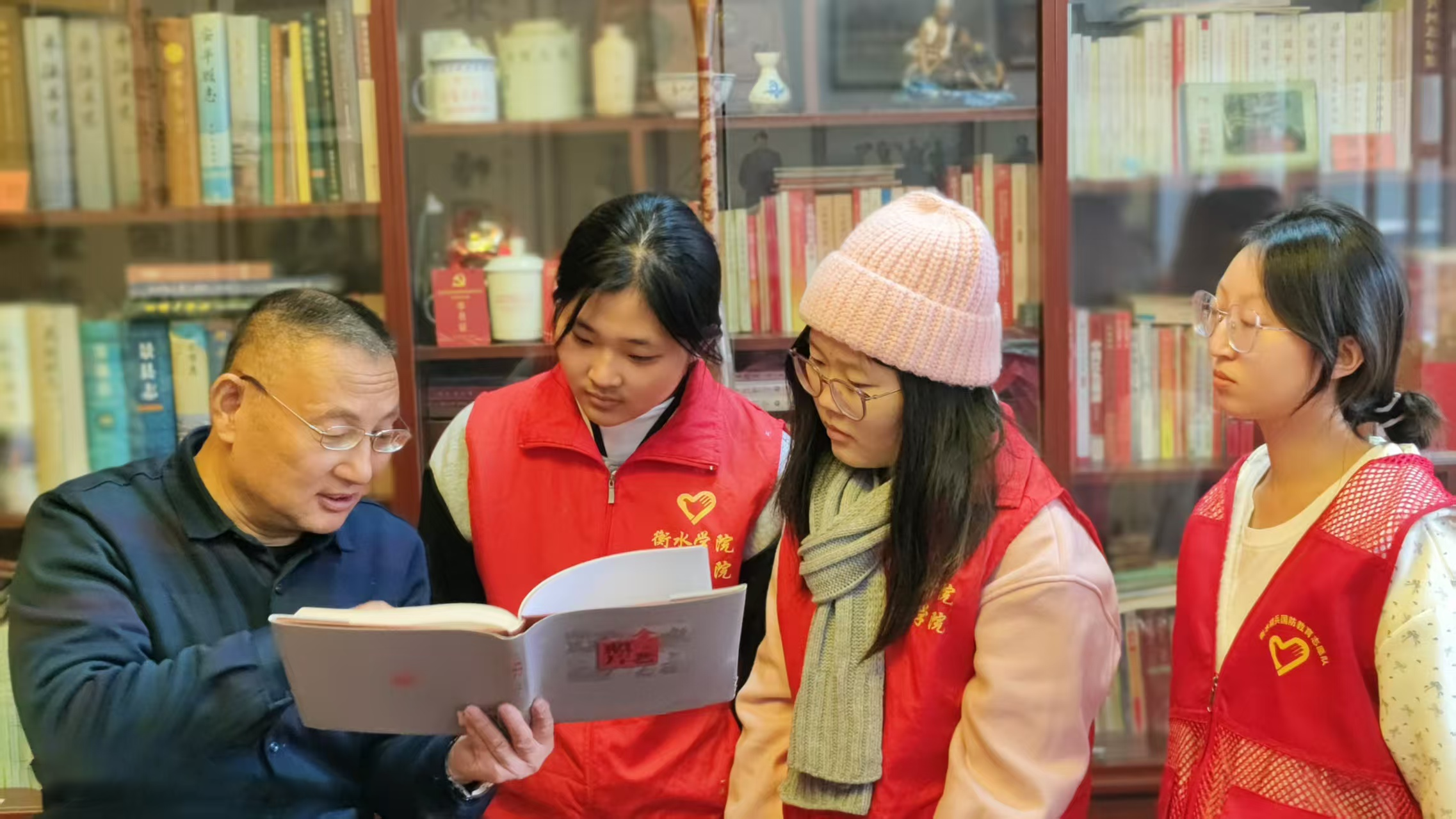 11月6日下午,衡水精兵國防教育志愿隊攜手衡水學院美術學院大學生,走進衡水市首家紅色文化書屋,開展沉浸式紅色教育活動。