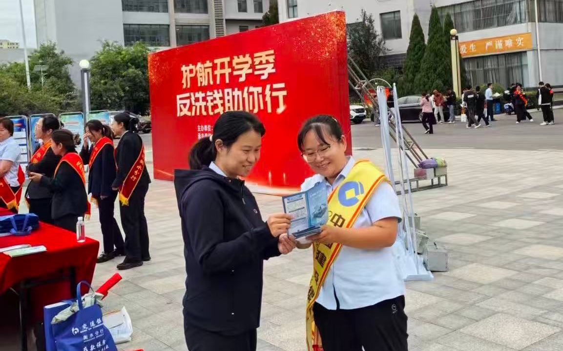 近日,人民銀行衡水市分行組織開展“護航開學季 反洗錢助你行”校園主題宣傳活動,建行衡水分行積極參與。活動現場,該行工作人員通過布放反洗錢宣傳展板、發放反洗錢宣傳折頁等方式向學生講解反洗錢知識,進一步提升了大學生群體的反洗錢意識。
