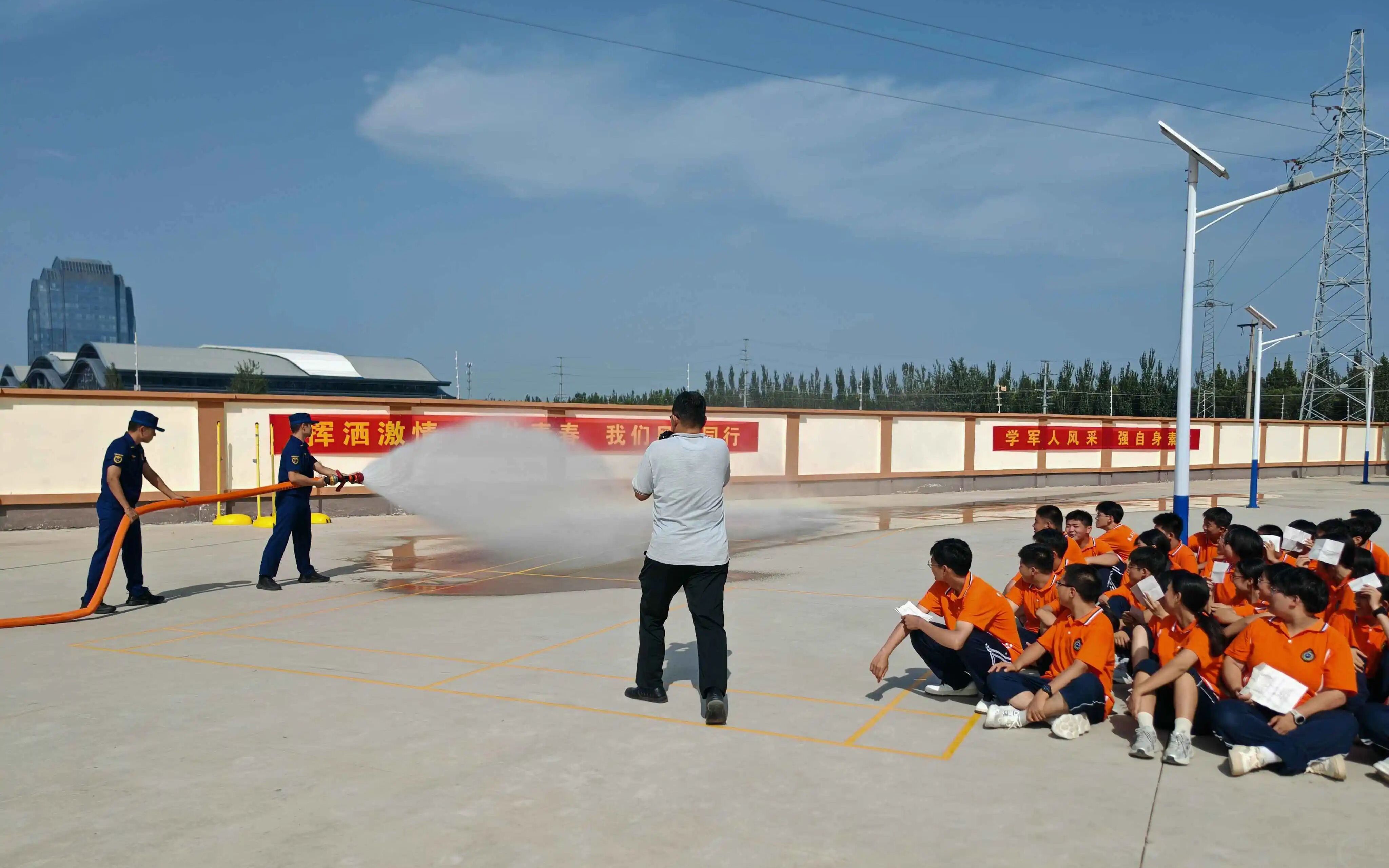 桃城區消防救援大隊走進衡水市大慶路小學、桃城區錦程中學、衡水市第十四中學中湖校區等學校開展現場宣教,宣傳員結合校園實際,通過案例分析、互動問答等方式,深入講解教學樓、宿舍、實驗室等場所的火災預防要點。在器材裝備展示區,消防指戰員帶領師生參觀水罐消防車、搶險救援車等車輛,并邀請學生試穿消防服、佩戴空氣呼吸器、登上消防車,沉浸式體驗消防員日常工作。在滅火器實操區,師生們在消防員的指導下分批次使用滅火器,學習“提拔握壓”四步操作法,親身感受初期火災撲救的要點。