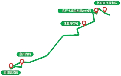 線路:懷來(lái)官?gòu)d服務(wù)區(qū)—官?gòu)d水庫(kù)國(guó)家濕地公園—涿鹿黃帝城—蔚縣暖泉鎮(zhèn)—蔚州古城
