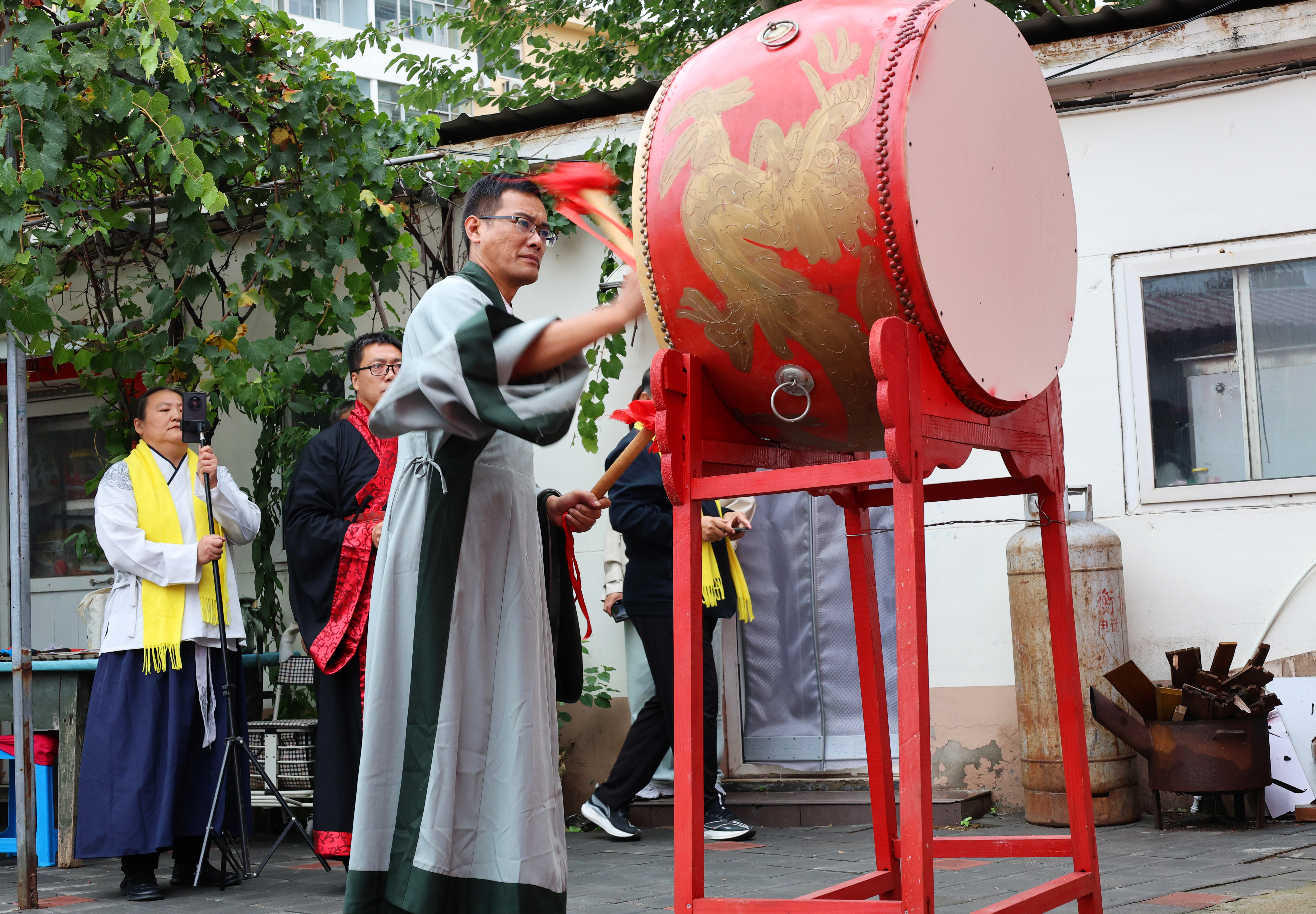 《高山流水》的悠揚旋律緩緩流淌時,全體人員齊聲誦讀《論語·學而篇》與《堯曰第二十篇》,書聲瑯瑯,傳遞著對經典的敬畏與傳承之心。隨后,九名身著傳統服飾的吟唱愛好者,以悠揚曲調唱起《禮運·大同篇》,古樸的吟唱聲將活動氛圍推向高潮。