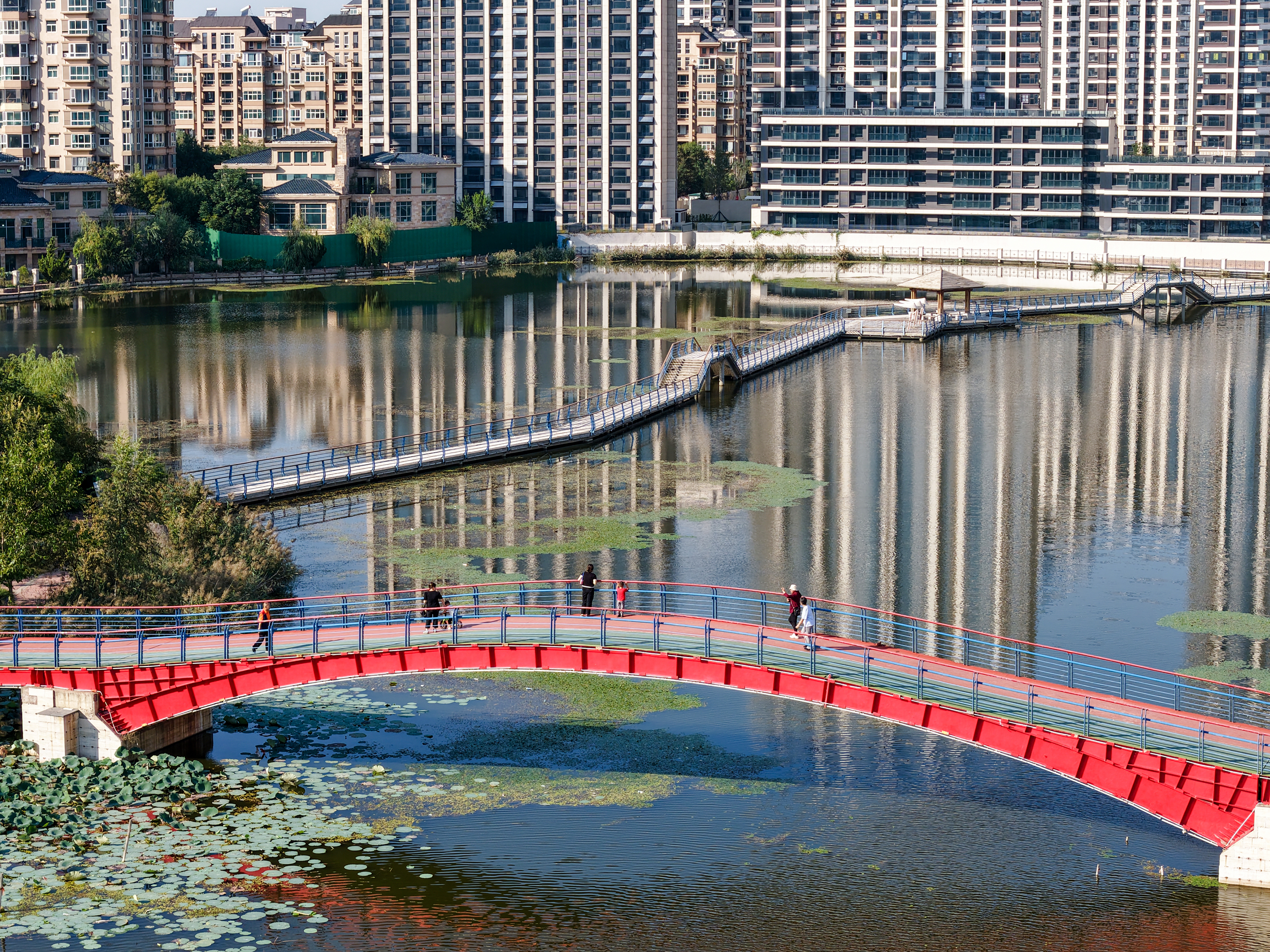 怡水園坐落于衡水市區內交通便捷地段,環境宜人。走進怡水園,首先映入眼簾的是那開闊而清澈的湖面,湖水在陽光的照耀下閃爍著微光,岸邊的水草隨著水波輕輕搖曳,湖水里,魚兒自由自在地穿梭游弋,引得不少市民駐足觀看。