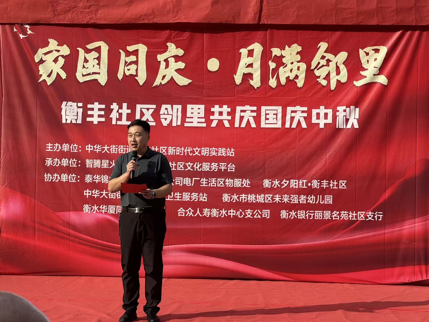 9月28日下午,衡水市桃城區(qū)中華大街街道衡豐社區(qū)廣場上歡聲笑語不斷。一場以“家國同慶·月滿鄰里”為主題的中秋國慶雙節(jié)慶祝活動,讓家國情懷在社區(qū)激蕩,讓鄰里溫情在互動中升華。