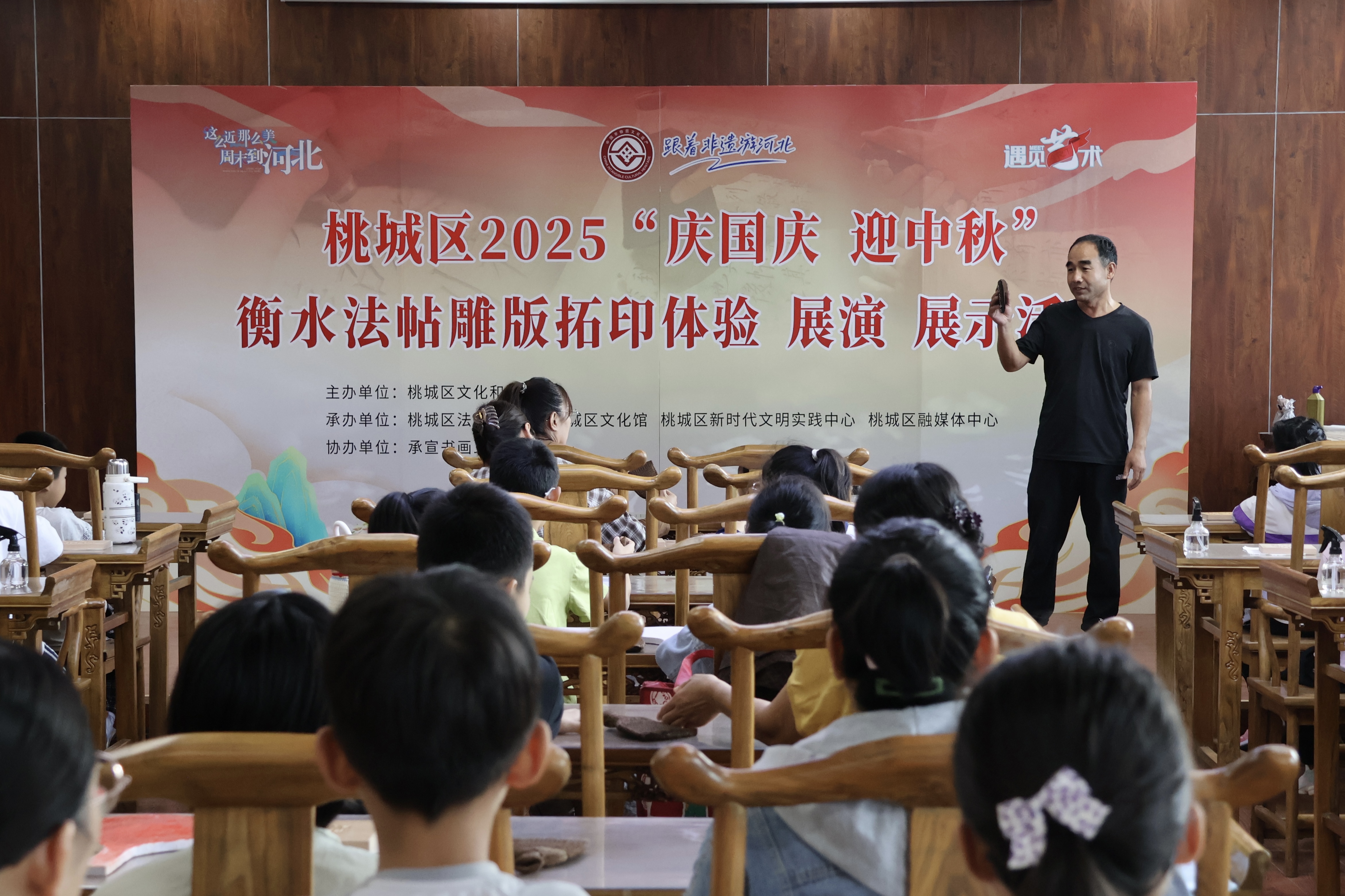 10月1日上午,衡水市桃城區法帖博物館內墨香四溢,由桃城區文化和旅游局主辦的“慶國慶 迎中秋”衡水法帖雕版拓印體驗活動在此舉辦。來自桃城區的50余名學生與家長齊聚一堂,共同開啟一場觸摸非遺、感受文化的獨特之旅。