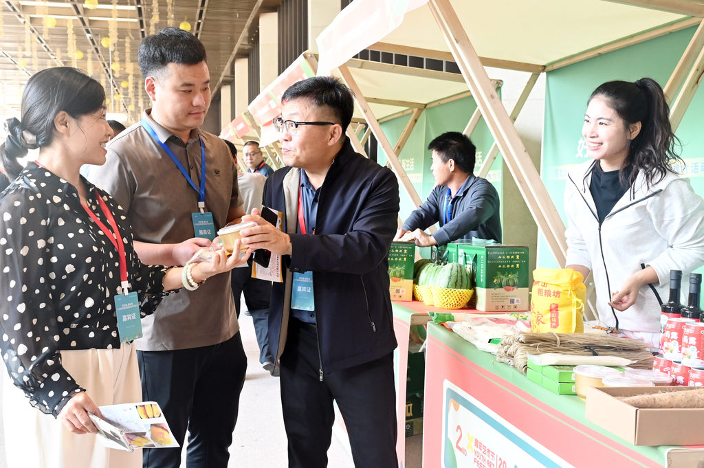 9月30日,河北農業品牌暨“雄安安選”品牌專題展覽推介活動在雄安新區商服會展中心舉行。圖為農產品展銷活動現場。河北日報記者 劉光昱 攝