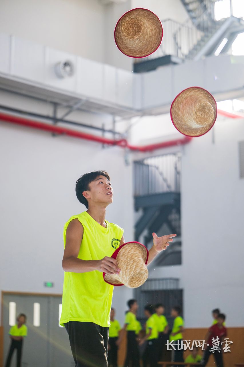 學(xué)員在吳橋雜技學(xué)校練習(xí)草帽技巧。長城網(wǎng)·冀云客戶端記者 許付磊 攝