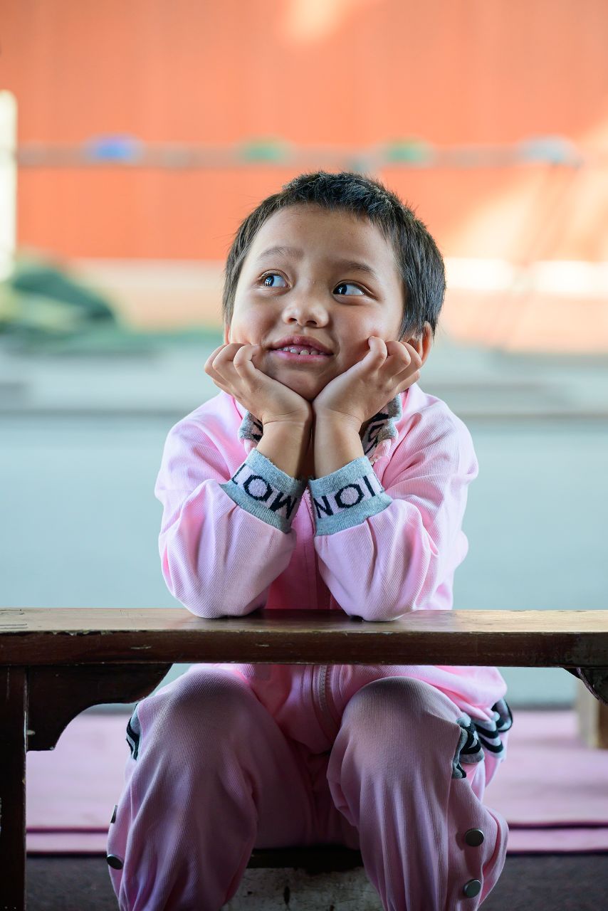 訓(xùn)練間隙,5歲的小萌娃坐在凳子上暢想美好的未來。長城網(wǎng)·冀云客戶端記者 許付磊 攝