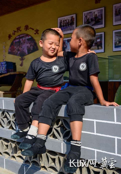 哥哥靳宇航(7歲)輕輕摸著弟弟靳宇健(6歲)的頭,互相加油鼓勁。長城網(wǎng)·冀云客戶端記者 許付磊 攝