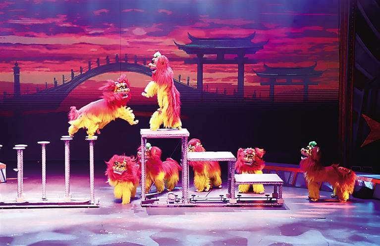 雜技選手在表演《祥獅躍九州》