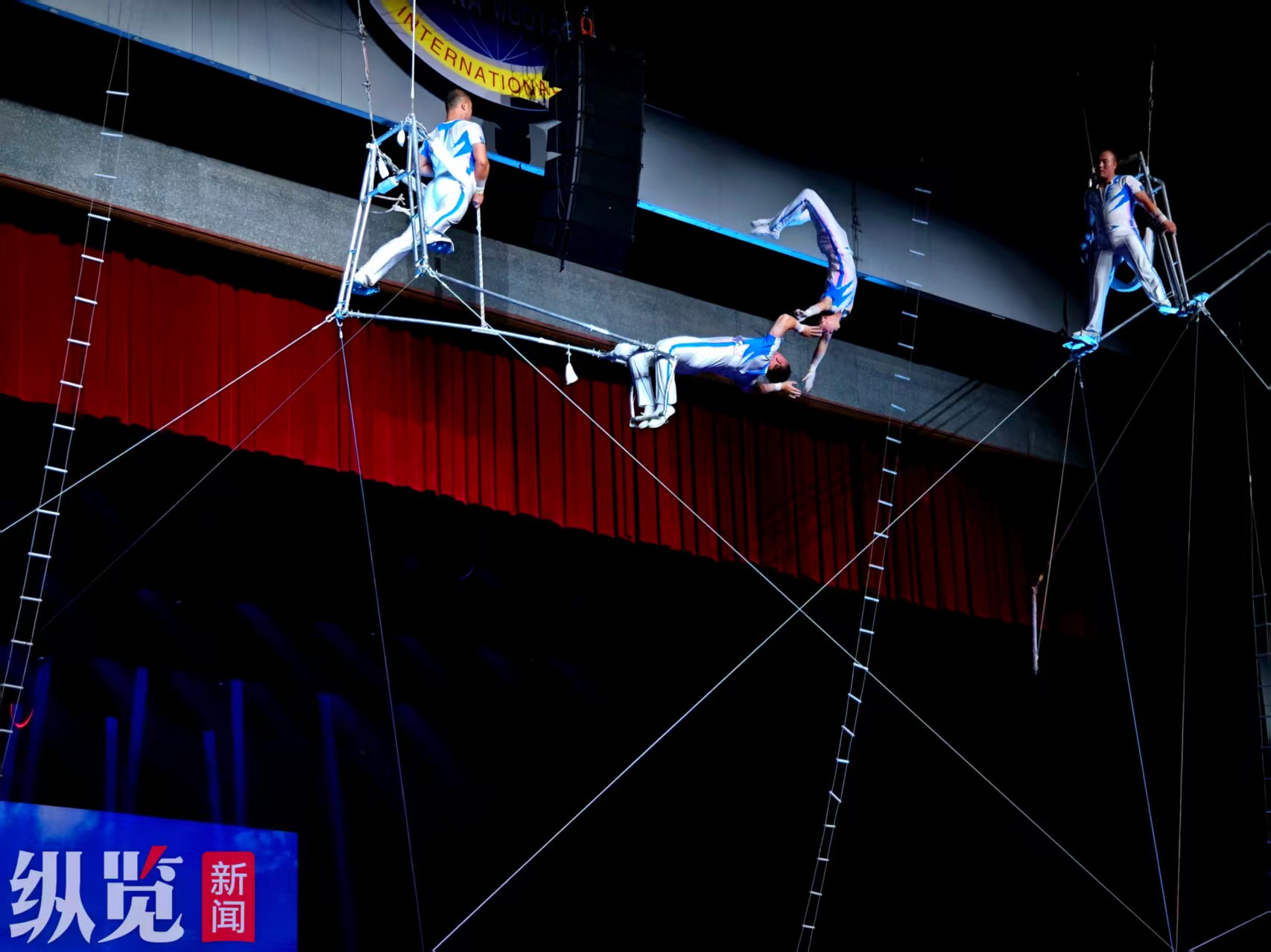 朝鮮國立雜技團帶來的《空中飛人》,則將演出現場氣氛推向頂點。當舞臺燈光驟然亮起,8位朝鮮演員在高空懸掛的器械上凌空起舞,以敏捷的身手挑戰 “后空翻四周抓手” 這一世界頂尖難度動作。每一次高空騰躍、每一次精準對接都驚心動魄,每一個起落都緊緊牽動著觀眾的心弦,演員們在空中舒展的身姿盡顯 “空中芭蕾” 的優雅與驚險,現場歡呼聲與驚嘆聲此起彼伏。