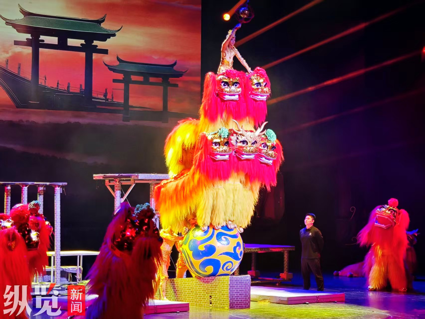 河北省雜技團和滄州雜技團的《祥獅躍九州》。邊義婷攝