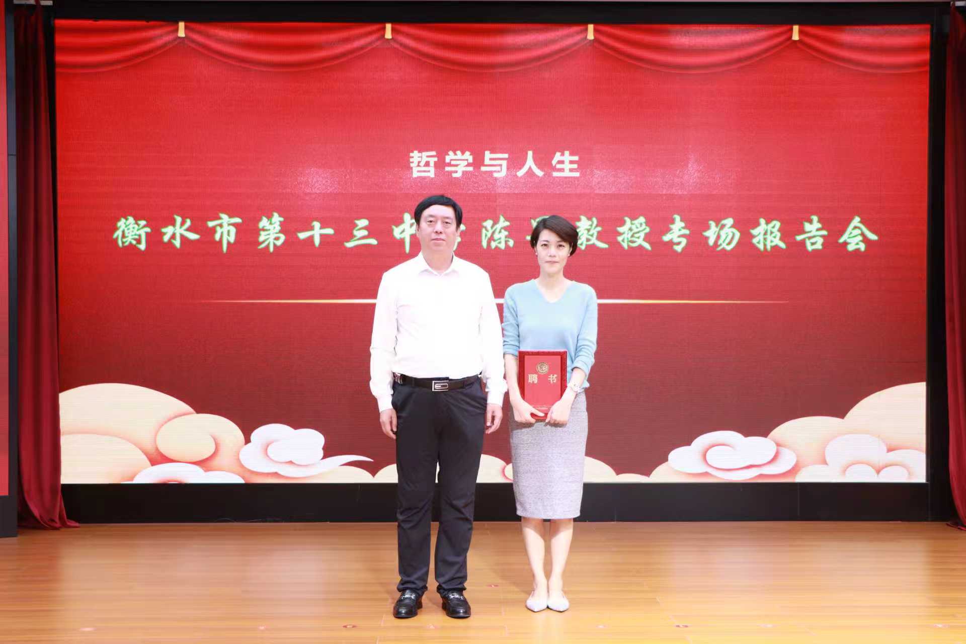 學校聘請陳果擔任“白祥友校長工作室專家顧問”“衡水十三中指導專家顧問”。