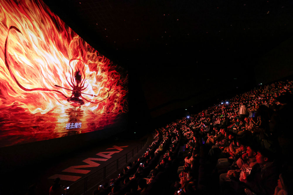 2025年2月25日,觀眾在貴陽越界影城IMAX影廳內觀看電影《哪吒之魔童鬧海》。動畫電影《哪吒之魔童鬧海》自1月29日上映后票房一路高歌猛進,僅用8天便登頂中國影史票房榜,隨后成為全球單一市場票房冠軍、全球動畫電影票房冠軍。2025年以來,國家電影局等相繼啟動“跟著電影品美食”“跟著電影去旅游”“中國電影消費年”活動,充分發揮電影對提振消費的積極作用;各地文旅部門等通過發布觀影消費券、舉辦主題活動等形式推動影旅融合,發展票根經濟。