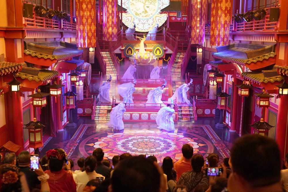 2024年5月19日,游客在西安長安十二時辰景區觀看表演《霓裳羽衣舞》。“長安十二時辰”主題街區將唐朝文化與現代旅游相結合,讓游客仿佛置身于千年前的長安城。近年來,西安積極推進產業升級和文旅融合,以中華優秀傳統文化創新創造活力助推經濟社會高質量發展,如大唐不夜城一樣火爆“出圈”的文旅項目層出不窮。