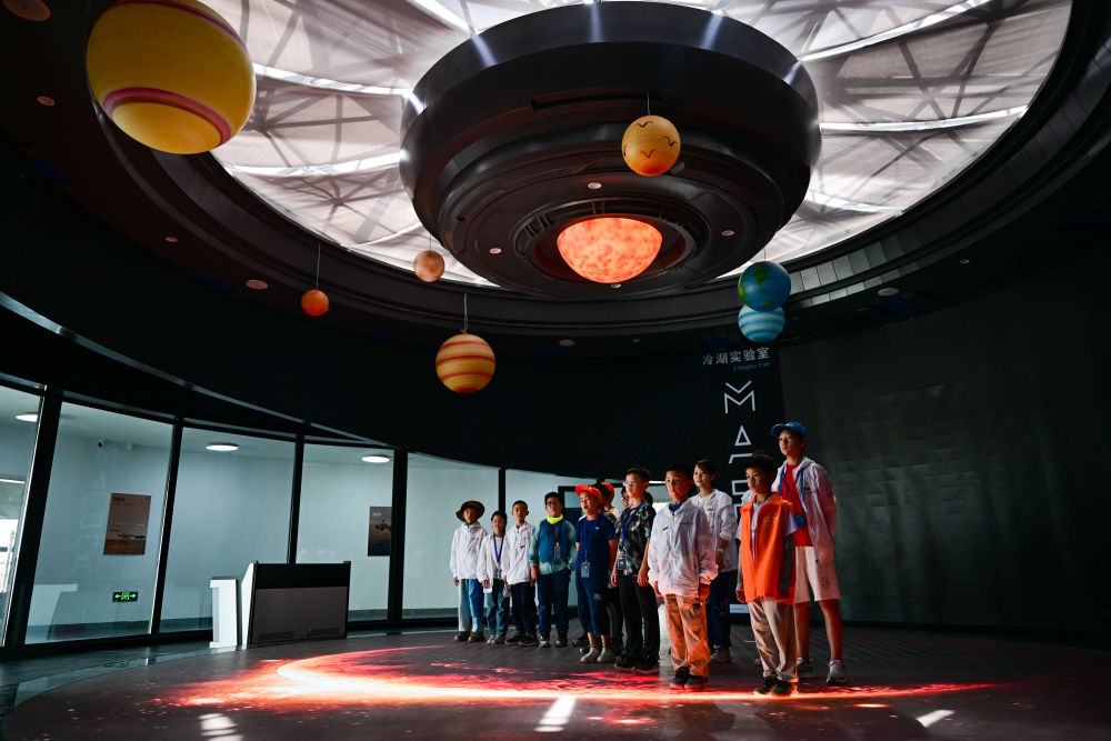 2025年7月29日,參加暑期研學的小朋友在青海省海西蒙古族藏族自治州冷湖鎮“冷湖實驗室”學習天文知識。冷湖鎮曾是因石油而興、又因油盡而沉寂的工業遺址小鎮。然而,得天獨厚的地理條件,讓冷湖鎮成為理想的觀星地。近年來,當地發展科幻特色文旅,讓戈壁小鎮煥發新的生機。冷湖天文觀測基地引進十余家科研單位的數十臺望遠鏡,依托天文資源和戈壁奇景,打造火星實驗室、黑獨山等“出圈”地標。連續舉辦多屆的“冷湖科幻文學獎”,更讓這片土地成為科幻創作的新高地。冷湖鎮以科幻點亮文旅新場景,也為中國西北工業小鎮的轉型探索出一條充滿想象力的新路徑。