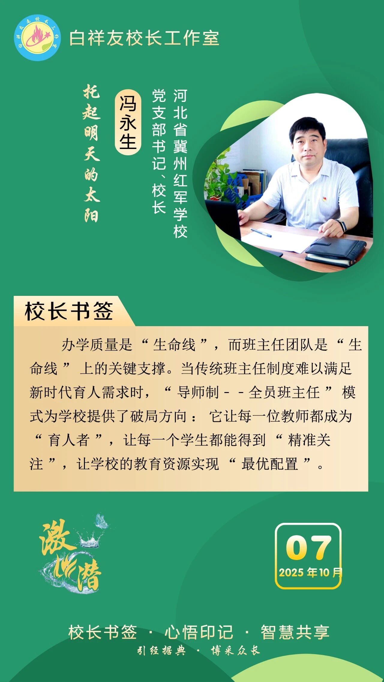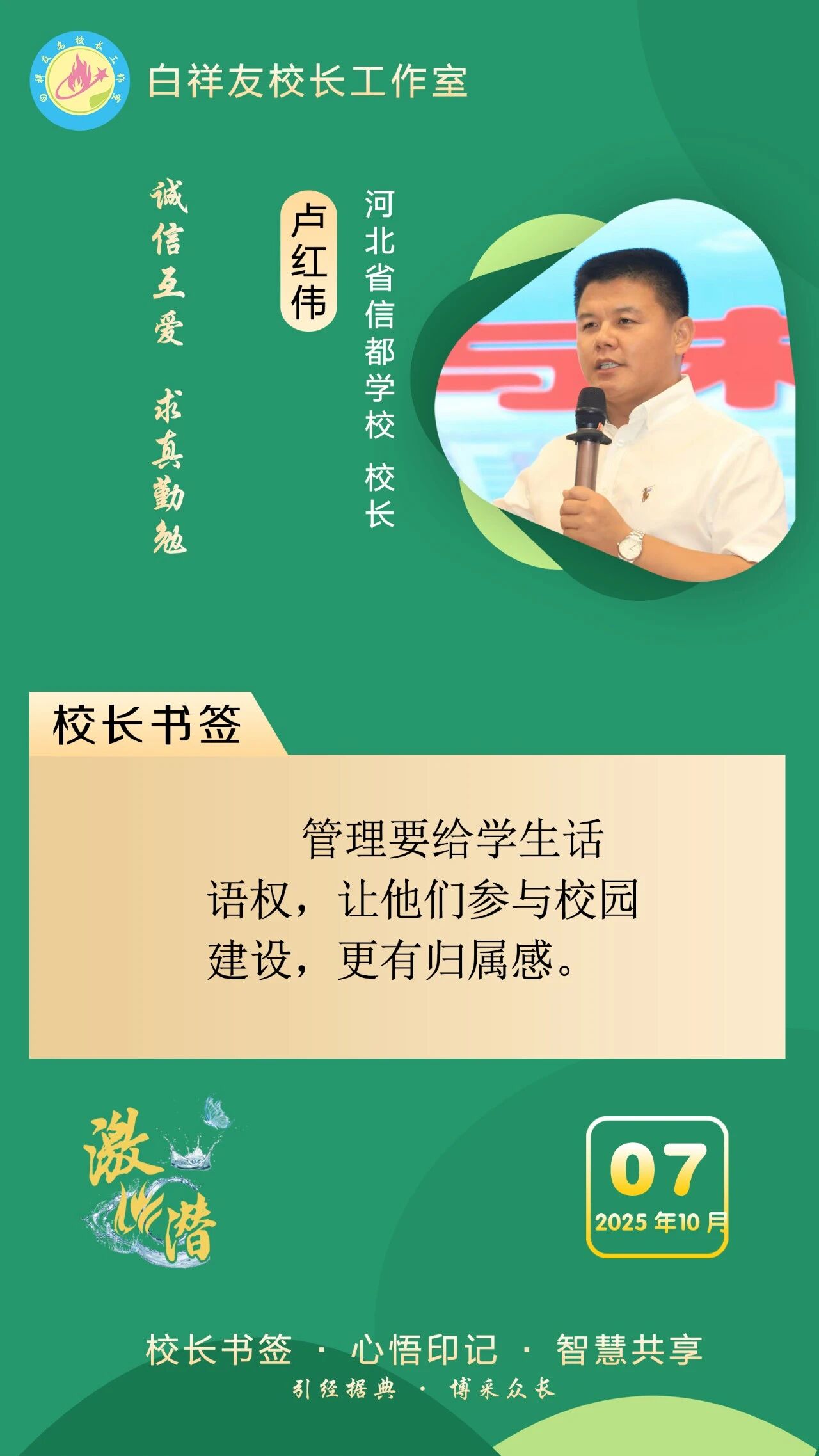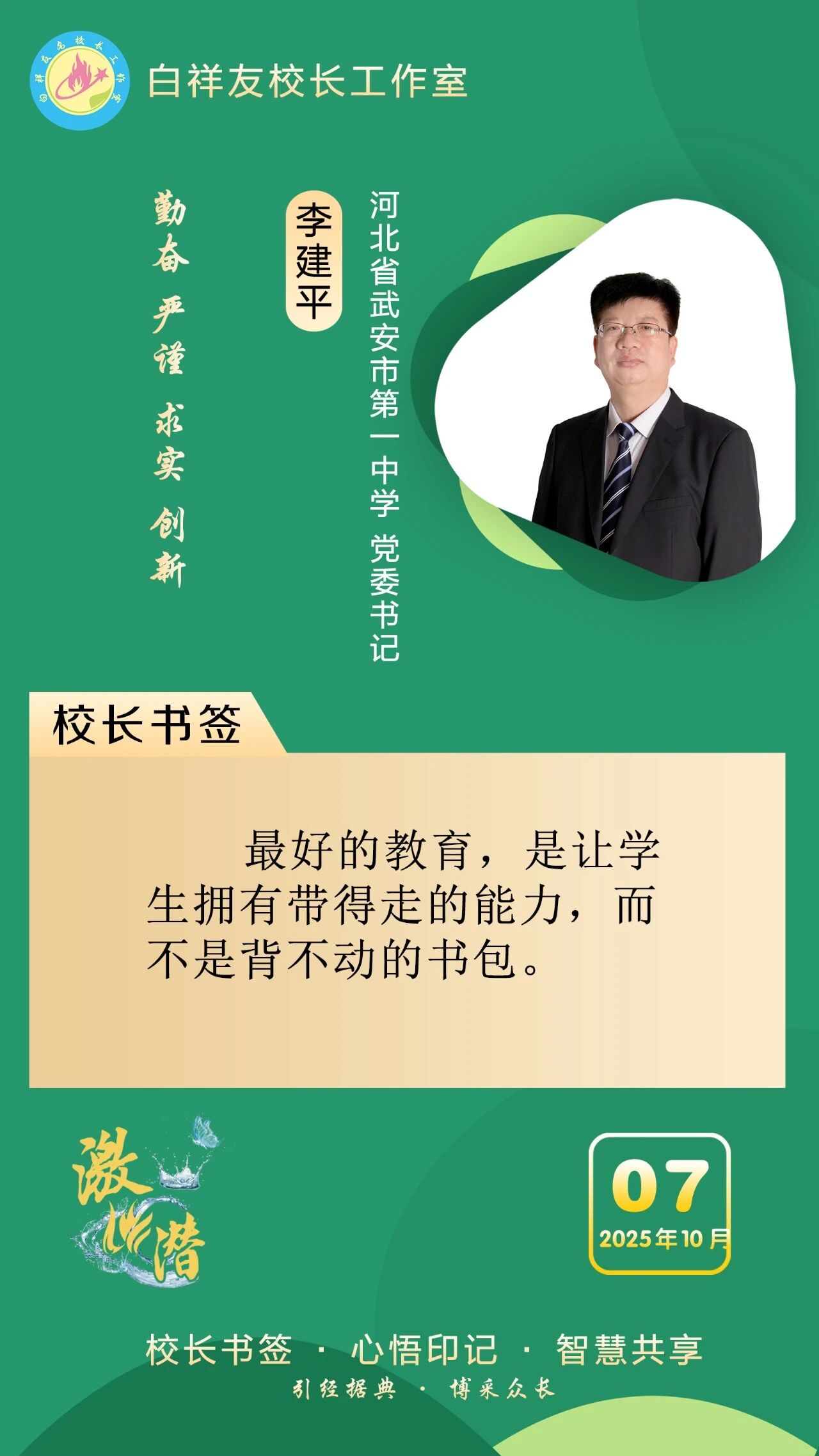 “白祥友校長(zhǎng)工作室”成立于2019年4月,是教育部“國(guó)培計(jì)劃”中小學(xué)名校長(zhǎng)領(lǐng)航工程、河北省首批名校長(zhǎng)工作室,目前省內(nèi)外成員校59所。工作室堅(jiān)持“資源共享、智慧共融、互助共贏”理念,已成為思想碰撞的交流場(chǎng),資源共享的品牌站,成果展示的輻射源。