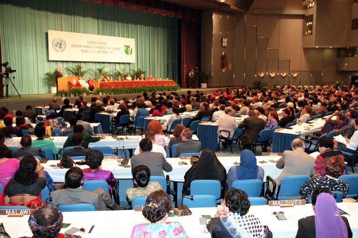 1995年9月4日,聯(lián)合國(guó)第四次世界婦女大會(huì)在中國(guó)北京召開。會(huì)議通過了具有里程碑意義的《北京宣言》和《行動(dòng)綱領(lǐng)》。新華社發(fā)