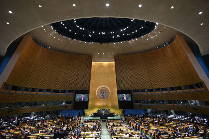 這是2025年9月22日在位于紐約的聯(lián)合國(guó)總部拍攝的聯(lián)合國(guó)大會(huì)紀(jì)念北京世婦會(huì)30周年高級(jí)別會(huì)議現(xiàn)場(chǎng)。新華社記者 李睿 攝