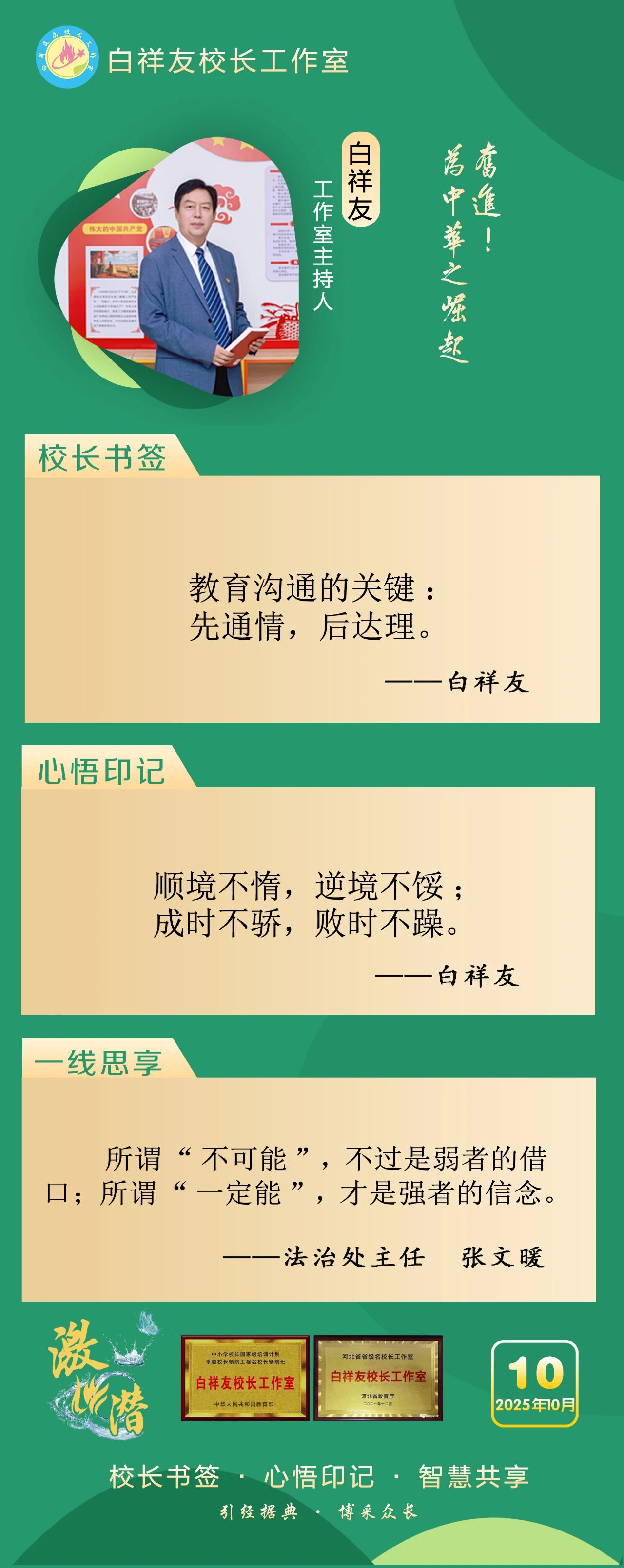 “白祥友校長工作室”成立于2019年4月,是教育部“國培計(jì)劃”中小學(xué)名校長領(lǐng)航工程、河北省首批名校長工作室,目前省內(nèi)外成員校59所。工作室堅(jiān)持“資源共享、智慧共融、互助共贏”理念,已成為思想碰撞的交流場,資源共享的品牌站,成果展示的輻射源。