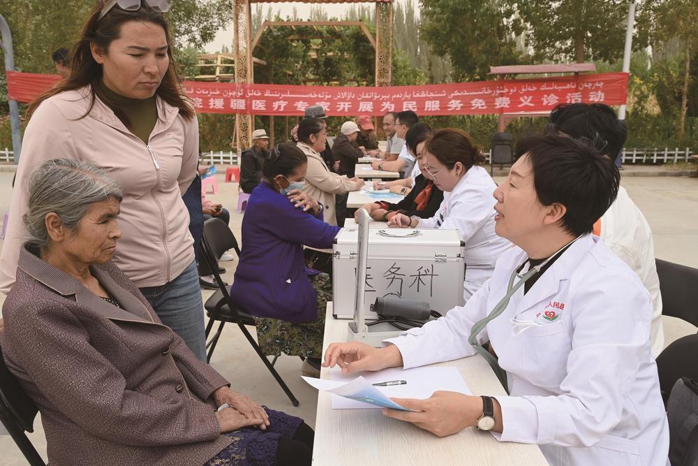援疆醫生深入邊遠鄉鎮義診,受到了鄉親們的歡迎。
