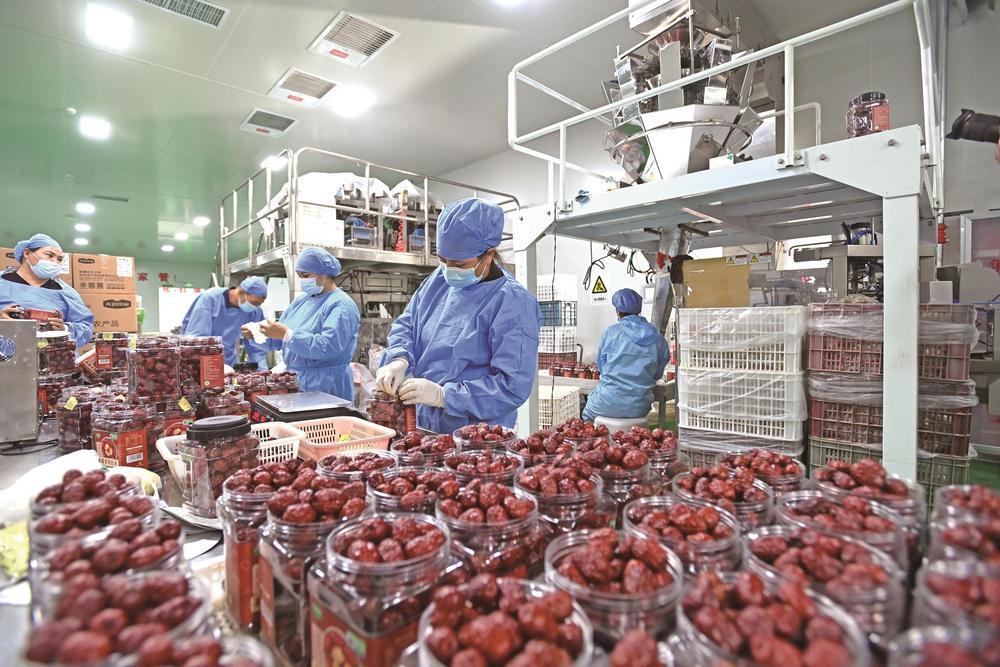 且末是紅棗種植大縣,第十批唐山援疆干部人才援助當地加工企業引進設備,促進企業增產,帶動棗農增收。