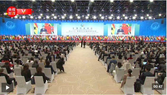 10月13日上午,國家主席習近平在北京國家會議中心出席全球婦女峰會開幕式并發表主旨講話。